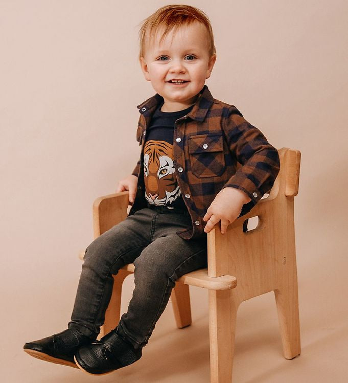 A cool pair of slim jeans for your babe. Soft denim. Slide snap.