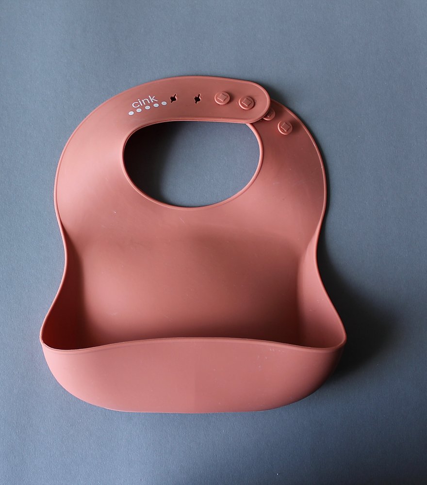 The Cink silicone bib! In five amazing signature colours, this bib complements our dinnerware perfectly. Just when you thought your meals couldn't get any prettier! Cink bibs are made of a soft and comfy silicone that doesn't leave any red marks on your babys neck. The silicone is of course BPA, PVC and phthalate free and can be recycled with plastic. It has a deep, sturdy spill pocket that makes it almost impossible for the food to find it's way to the floor.