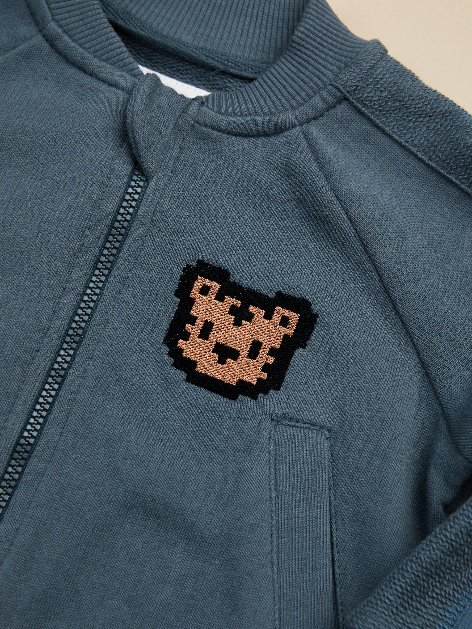 Sporty, premium organic terry track jacket with digi tiger patch, zip closure and contrast side stripe