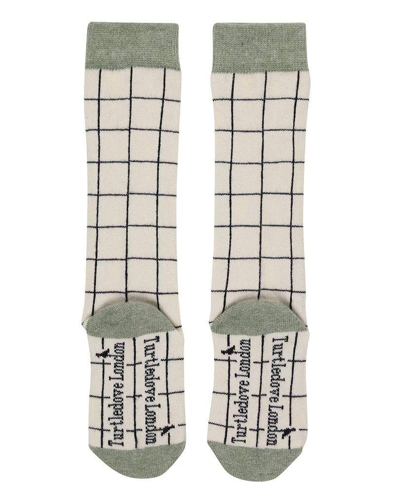 In our classic grid design, these socks will co-ordinate back with your Turtledove London wardrobe. Designed for both boys and girls, this monochrome design with a pop of sage green is a great add on to style up your little one!
