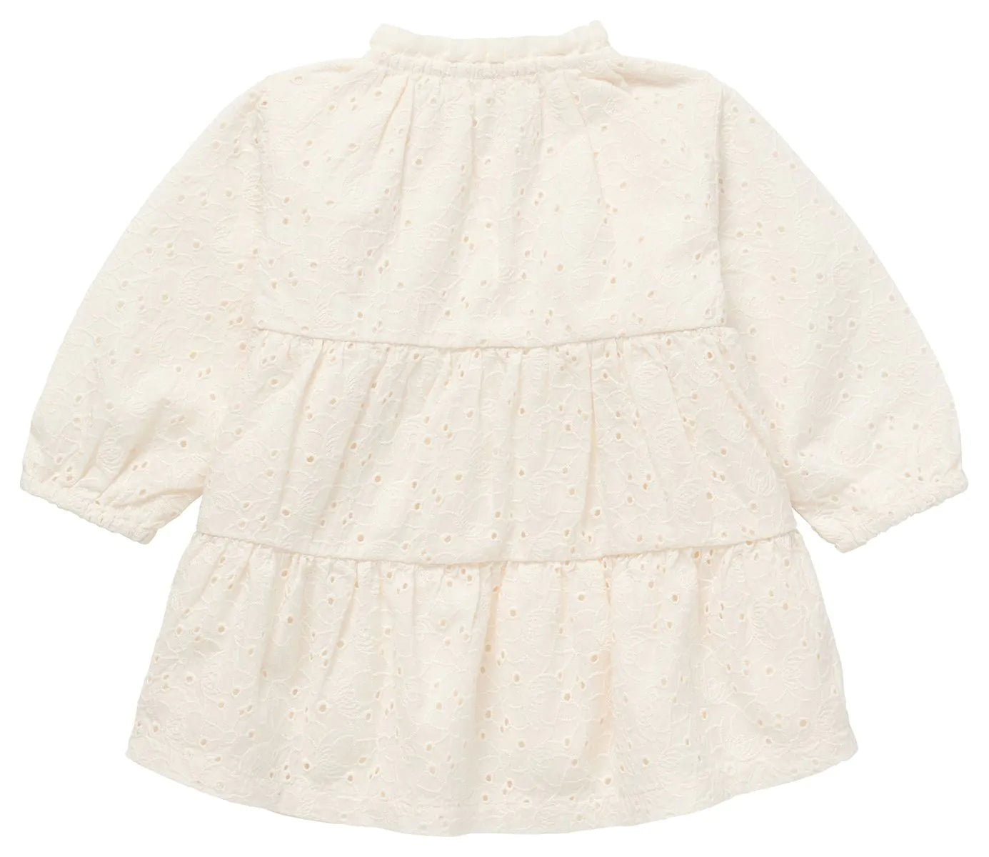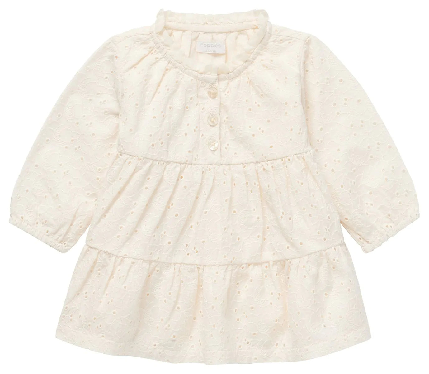 The Leawood dress is made from embroidered fabric and boasts a very romantic look, thanks to the fabric and the ruffled collar. The mother of pearl buttons on the chest will make getting dressed and undressed a great deal easier. The elasticated sleeve cuffs have resulted in a subtle puffed effect.