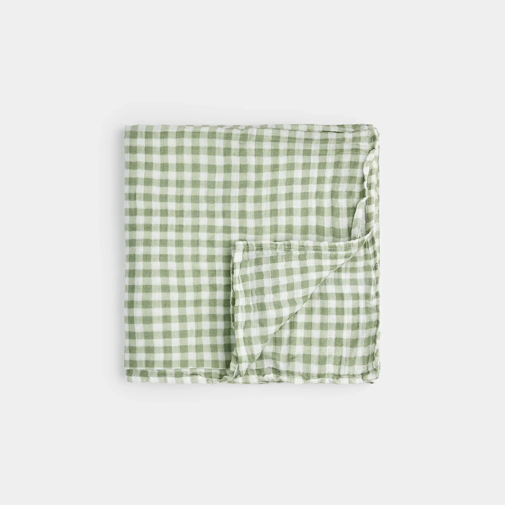 Nothing says Spring like gingham, and this green gingham swaddle is the perfect little gift for Spring arrivals. As standard with all our swaddles, the super soft blanket comes neatly folded into a drawstring bag with the same pattern – so it can be quickly stashed in your bag for later.