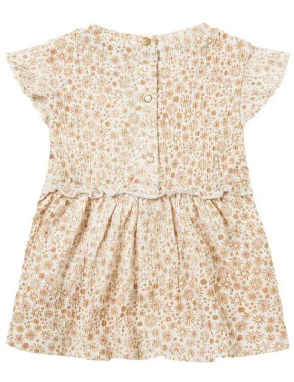 The sun is shining down on this dress from the Noppies Baby collection! The Neoga dress features an all-over print with suns, flowers and more. The ruffle details have beautifully finished off the look. The press studs on the back have made sure getting dressed, undressed and nappy changes is a great deal easier.