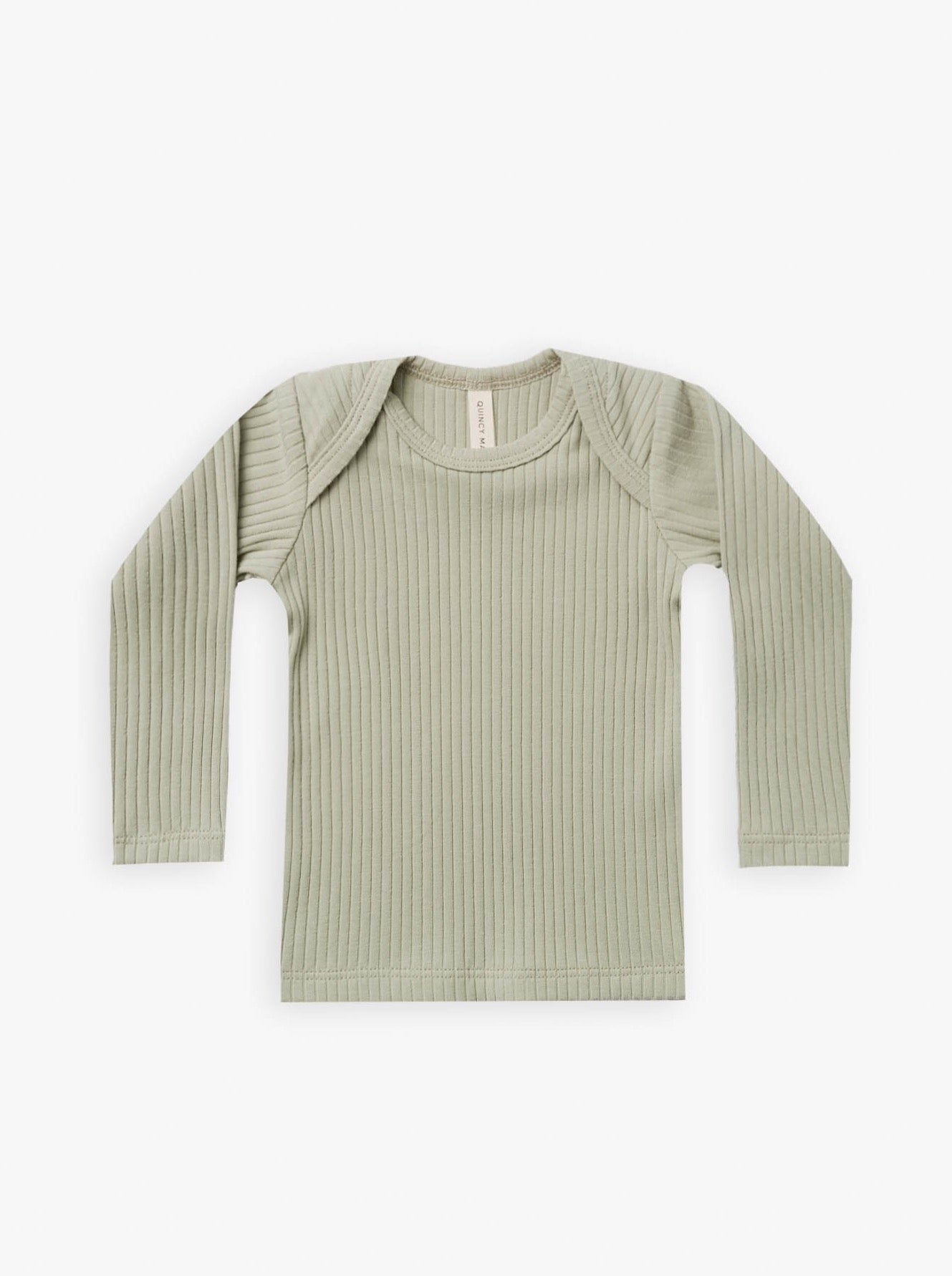 This longsleeve lap tee is in a stretchy rib knit. Slim fit with added stretch to grow with your baby.