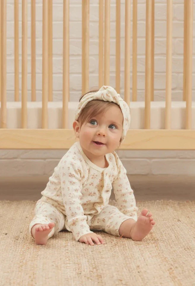 The Pointelle Knotted Headband by Quincy Mae - Blush Floral