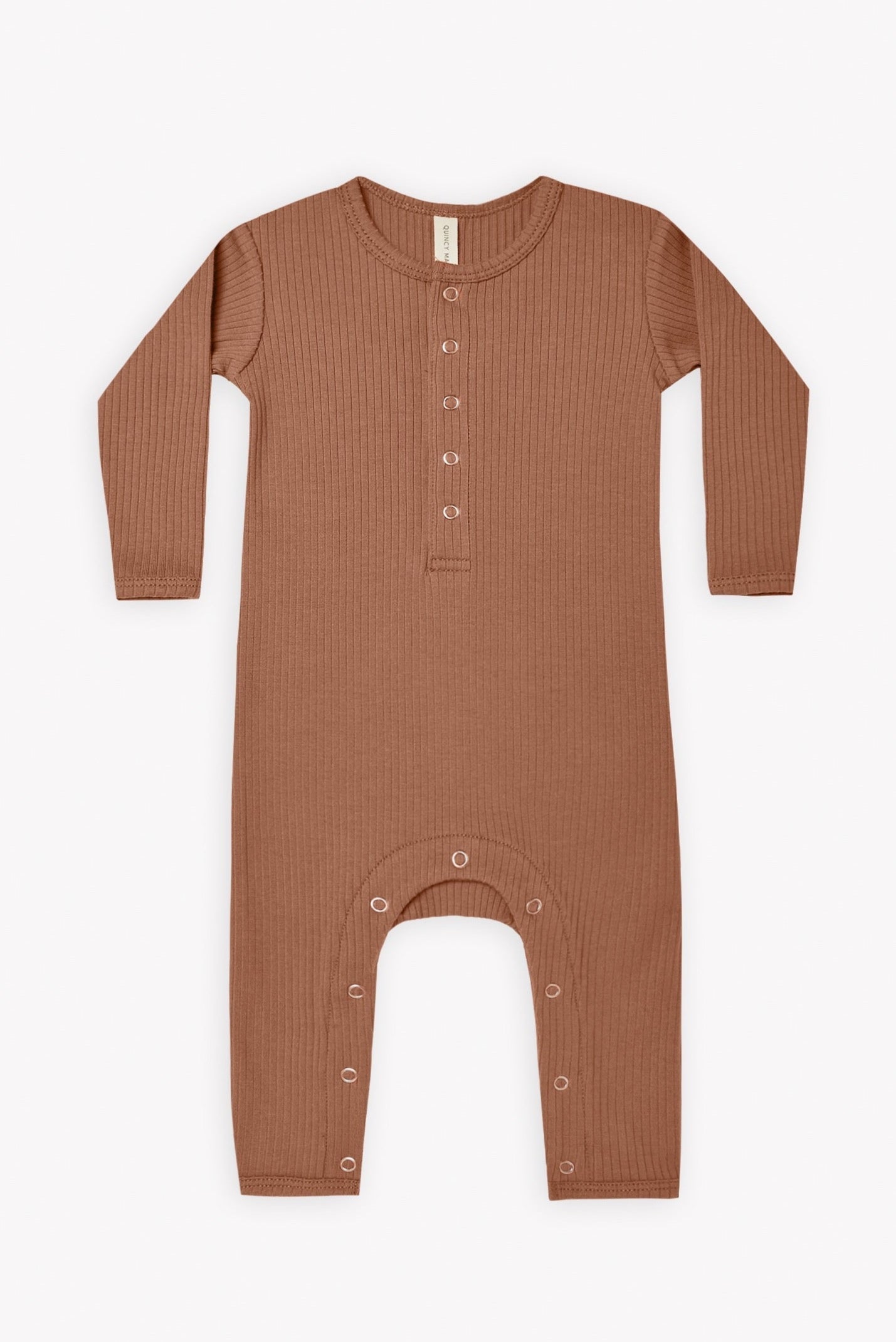 The Ribbed Baby Jumpsuit by Quincy Mae - Clay