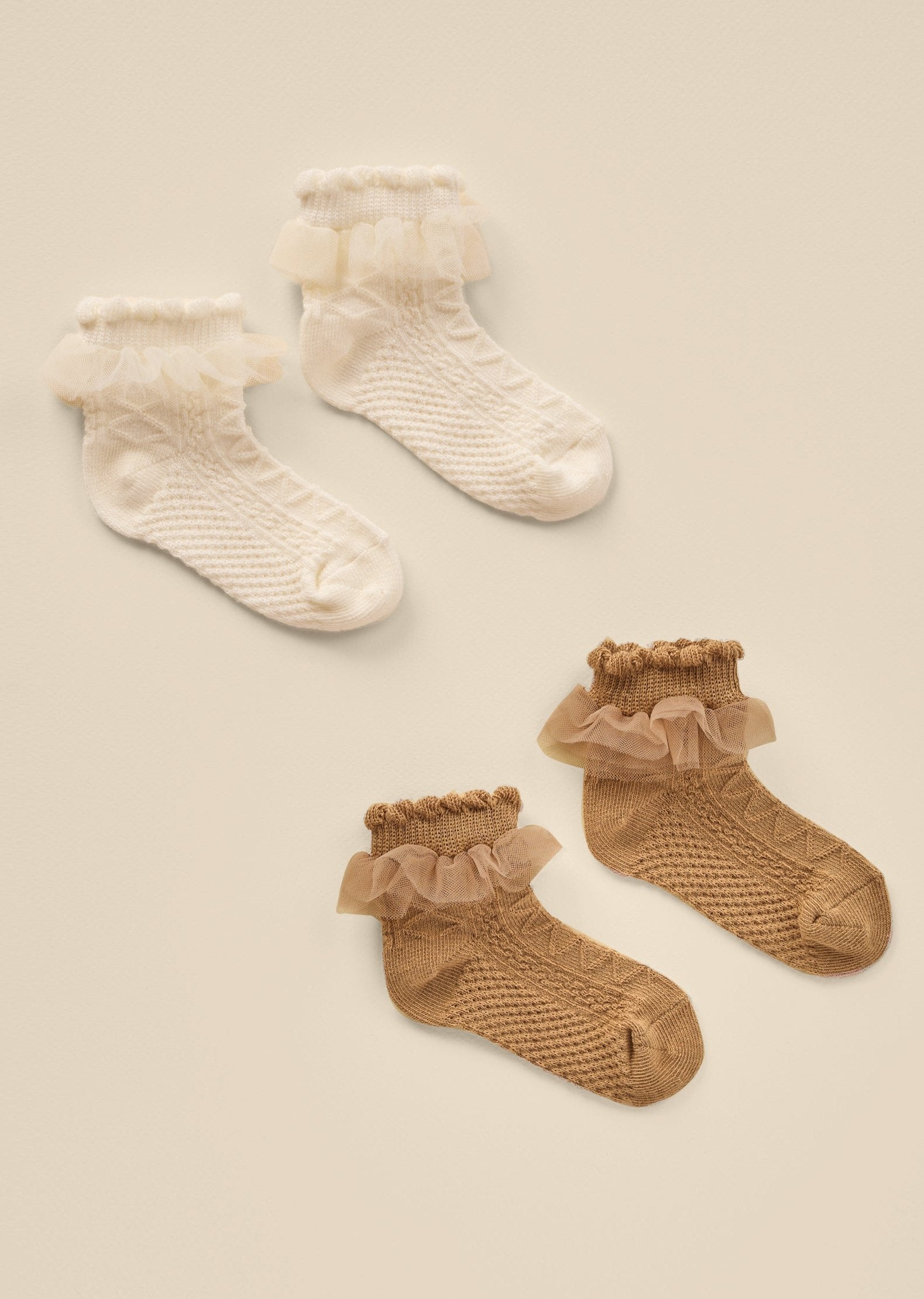 The Ruffle Sock SET of 2 by Noralee - Ivory + Golden - BABY
