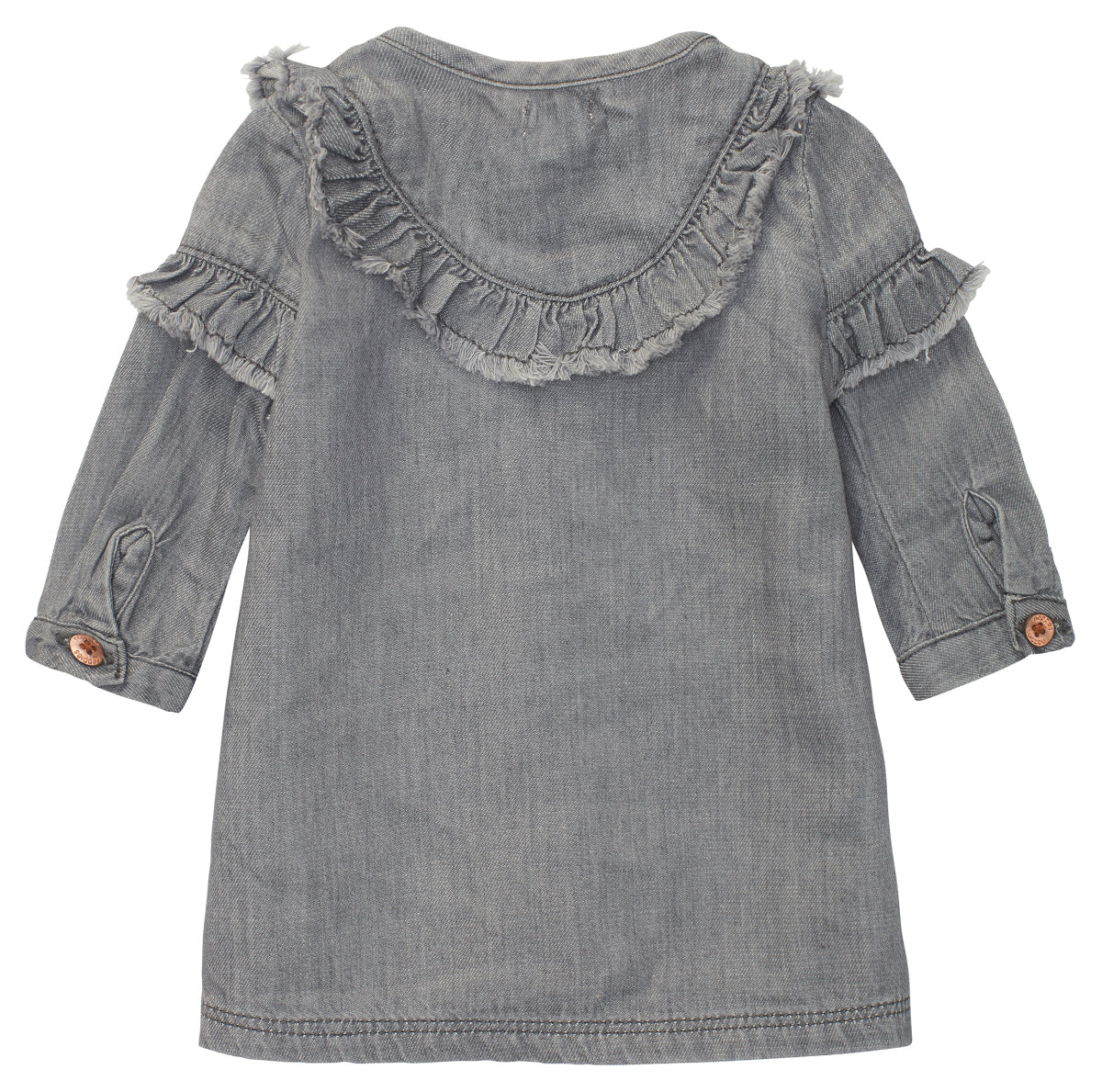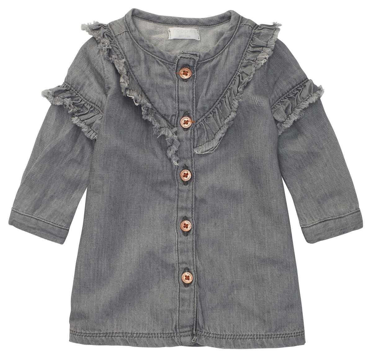 This denim dress is both cool and cute! The Sappington dress features an unfinished ruffled collar and ruffles on the sleeves. Nice and quirky. The fabric’s cool washed effect has nicely finished off the cool look.