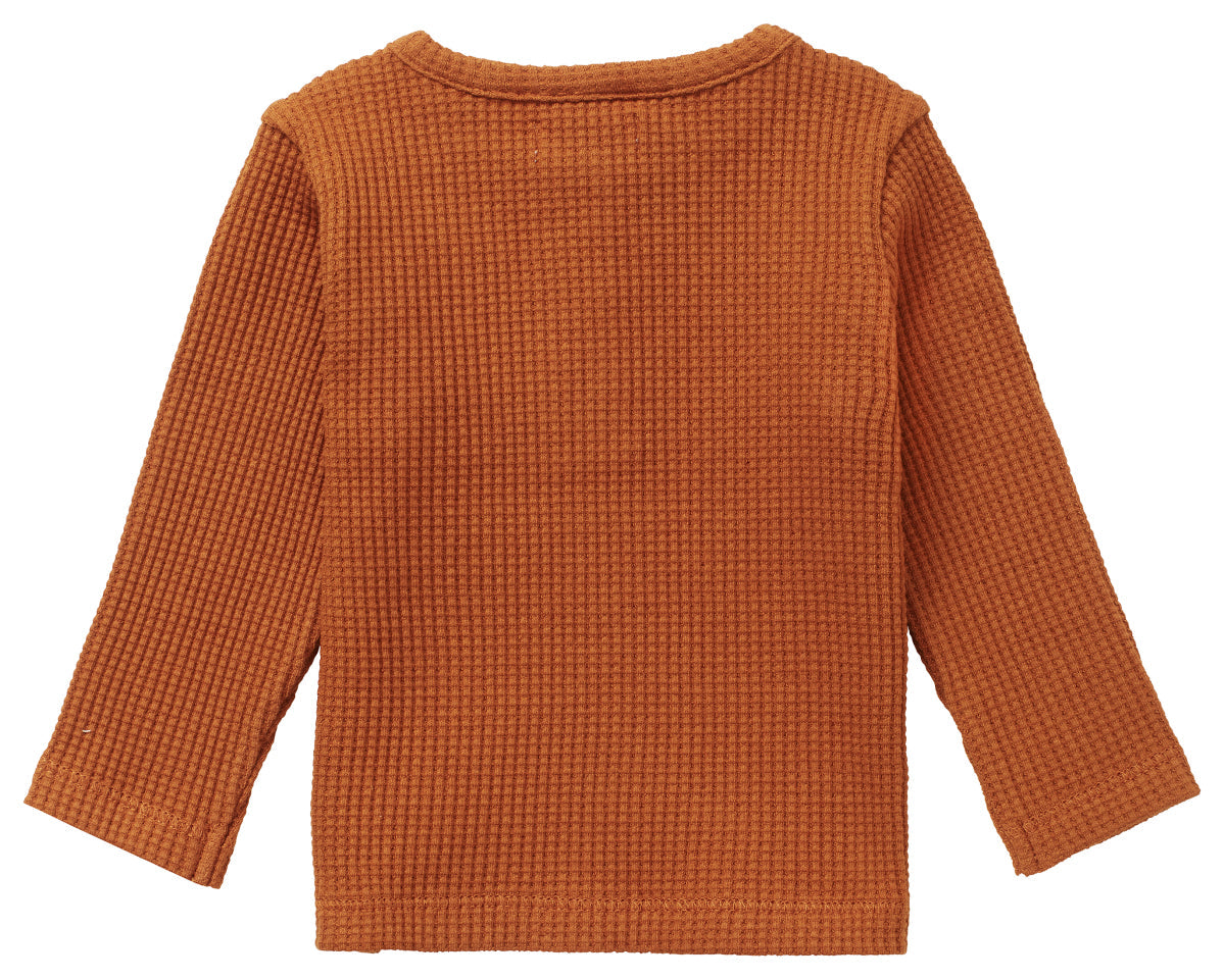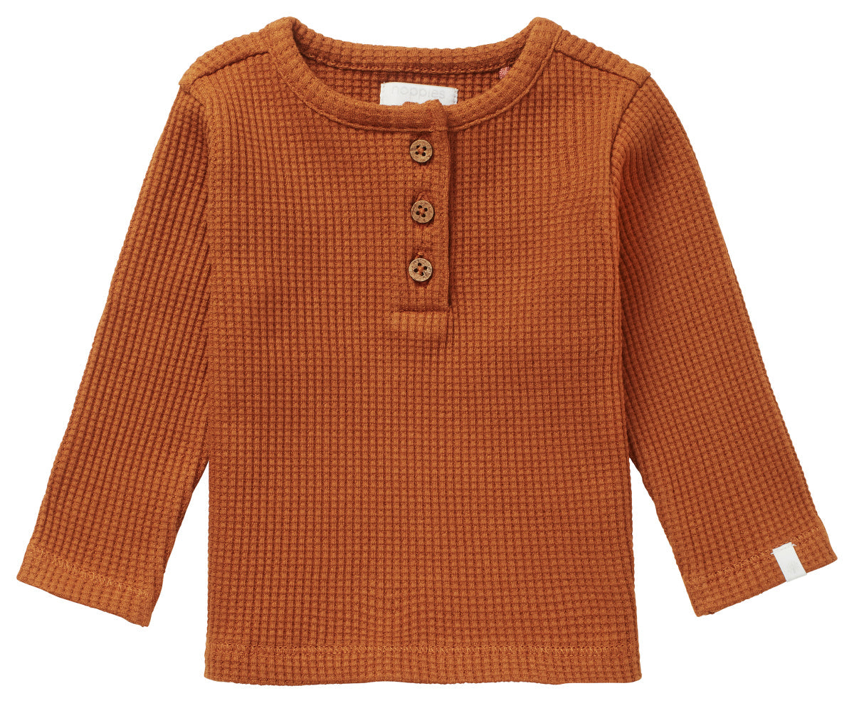 Spilsby Long Sleeve - A fantastic unisex basic which you can literally combine with anything. This baby shirt is made from soft waffle fabric with a breathable structure. The shirt can very easily be pulled over your little one’s head, thanks to the three buttons on the shoulder and the stretchy fabric. This long sleeve is perfect for mixing and matching with the other matching items. This shirt is made from GOTS-certified organic cotton. Not just super soft for your baby, but it also meets high international production and environmental standards.