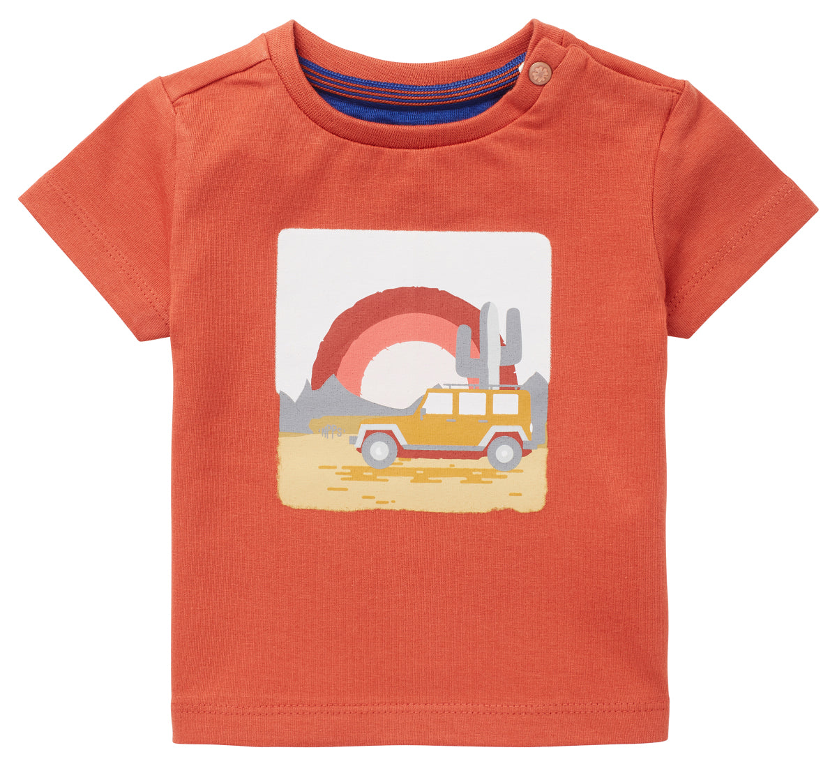 A great basic T for your baby’s wardrobe! This T-shirt features an adventurous print for the little one to wear and explore the world in. The T-shirt features a press stud on the shoulder, making sure pulling it over their little head is nice and easy.