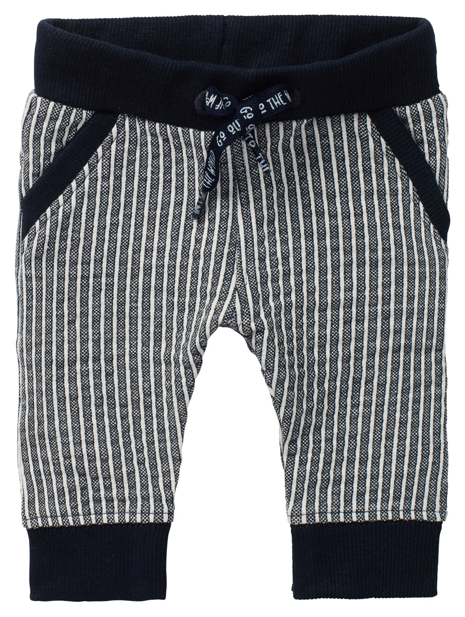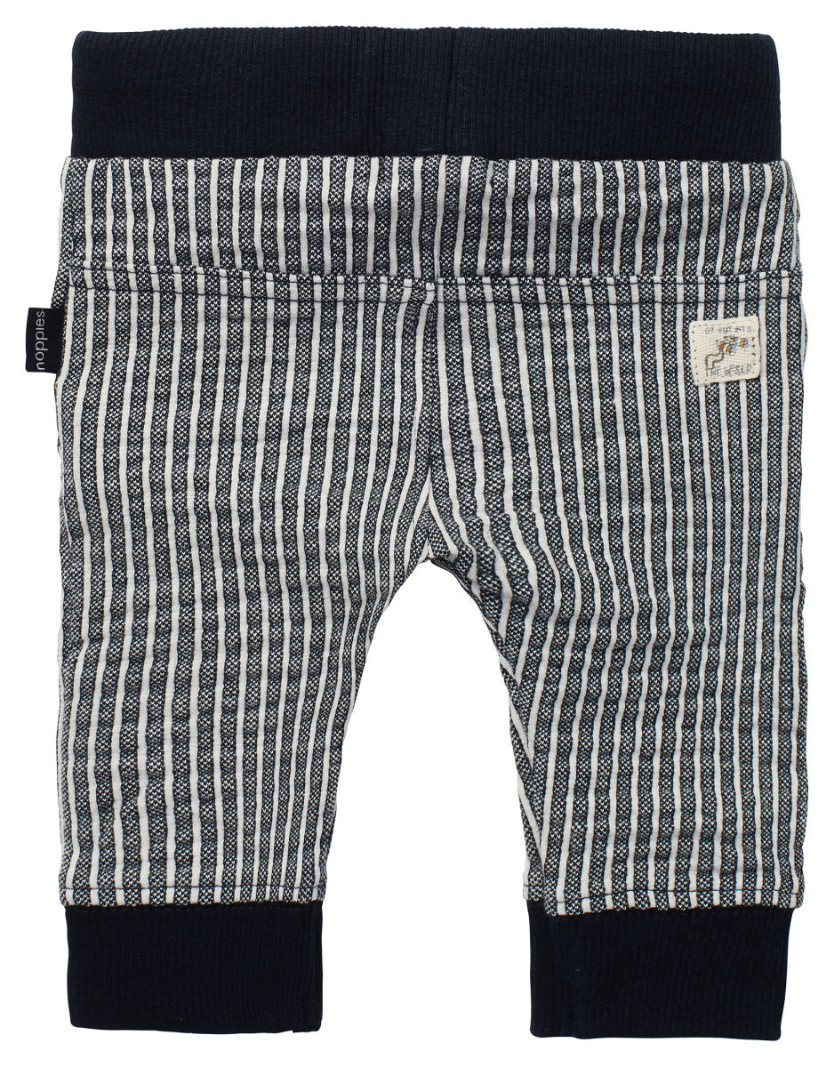 Summery baby trousers with a maritime striped pattern. Made from lightweight stretch fabric with an elastic waistband. Perfect for a day out at the beach! The string prevents the trousers from falling down. These baby trousers are made from certified organic cotton. Not just super soft for your baby, but it also is better for the environment!