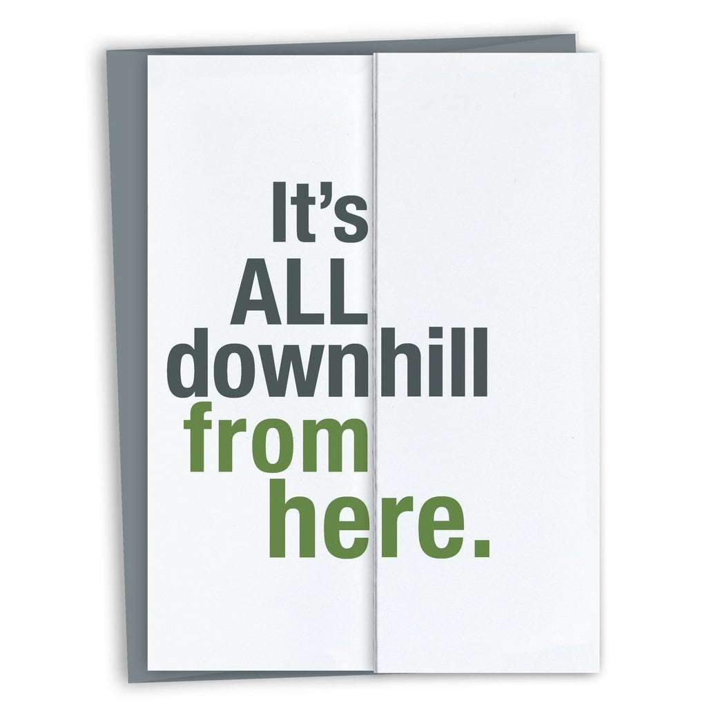 - ALL DOWNHILL: It's fantastic you're 50! All the old age jokes are downers, like being over the hill from your age on, but I hear it's a big adventure.