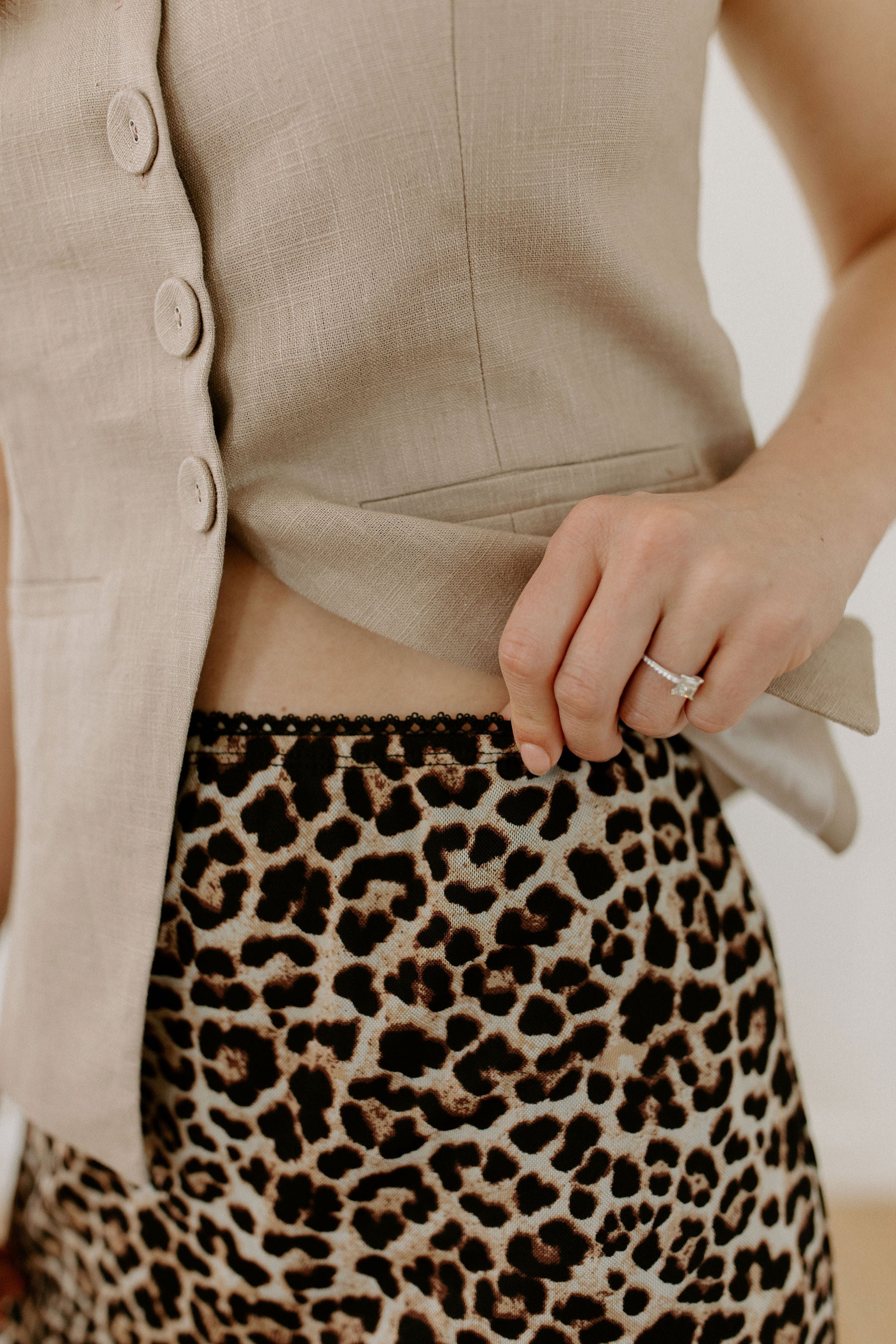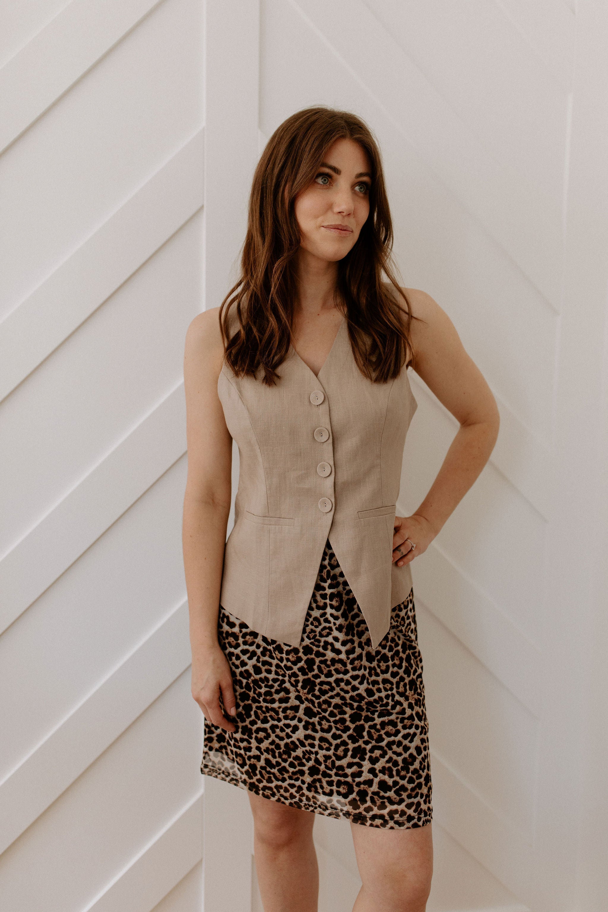 - Above knee length skirt