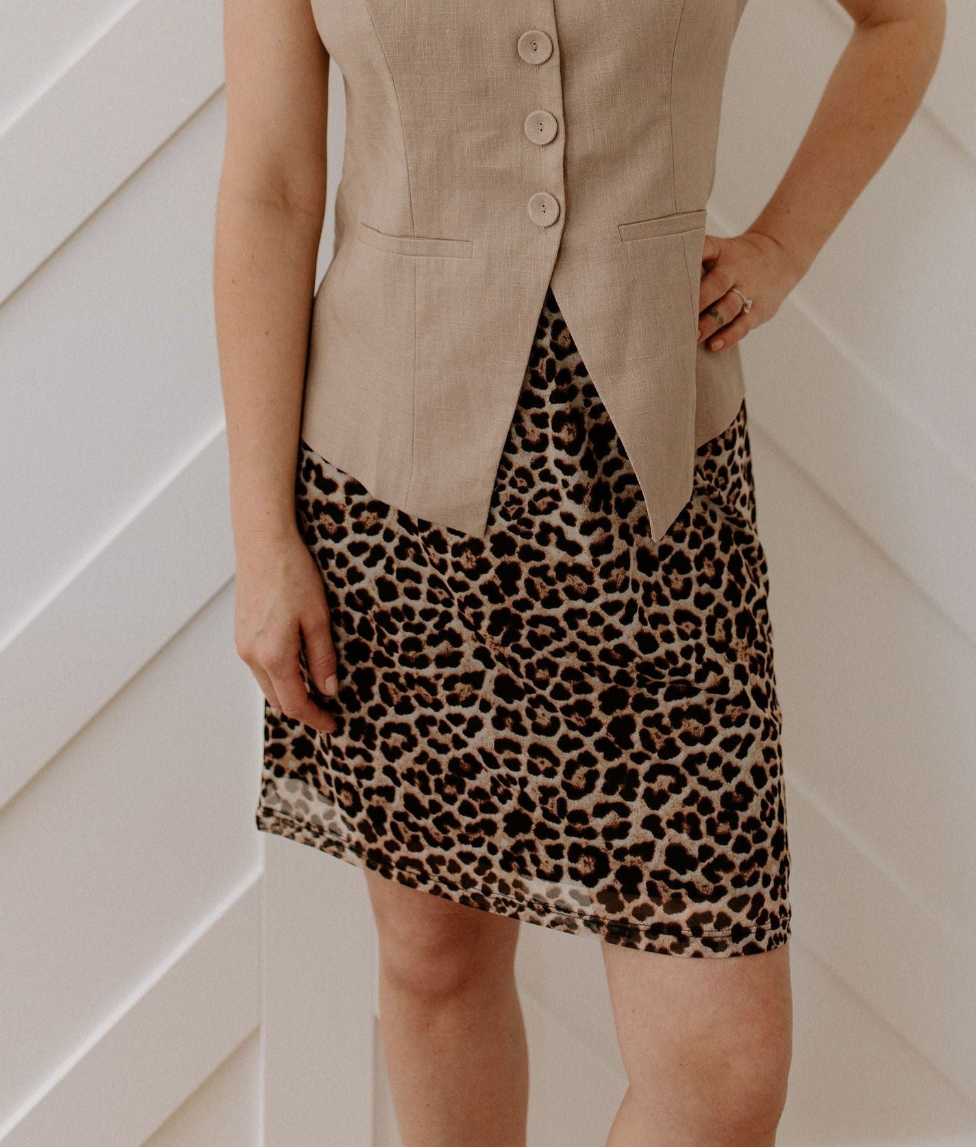 The Cecilia Leopard Mesh Knee Skirt by NLT