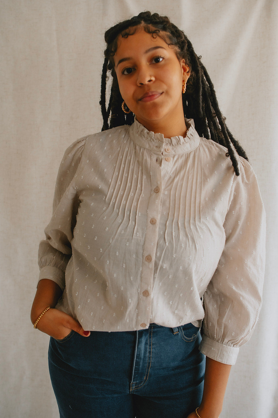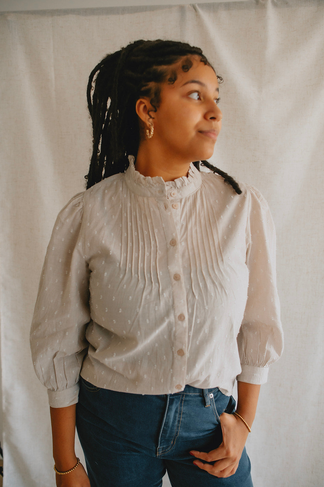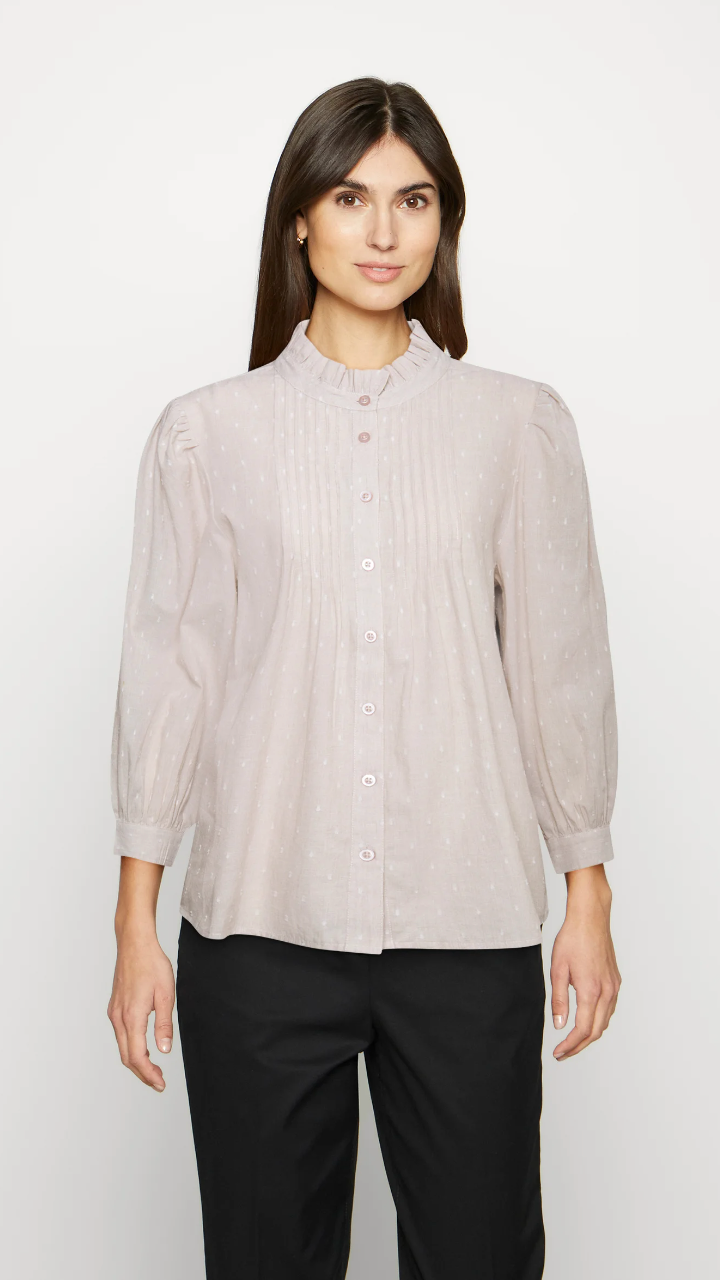 An essential addition to your wardrobe, this blouse from KAFFE is full of dotty texture for an elevated touch. Lengthening the profile with its high frill neckline and three-quarter length sleeves, it's made from cotton for comfortable wear and is an easy daytime option.