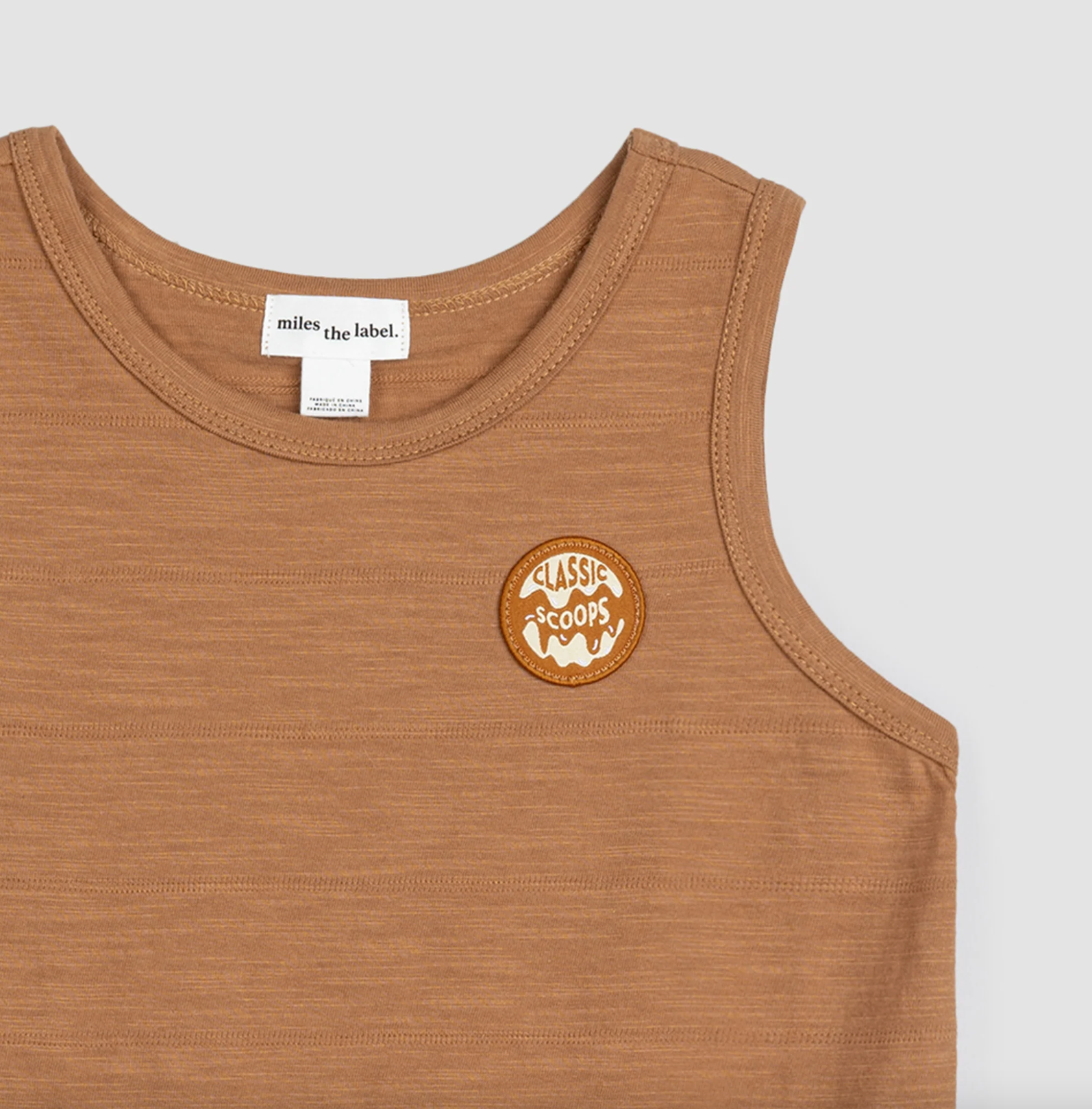 This retro-style tank top has subtle stripes and a ‘classic scoop’ motif on the chest. Made from a slub-textured jersey, the tank is super soft and gentle on even delicate skin. Pair with shorts or joggers for a casual, all-day style.