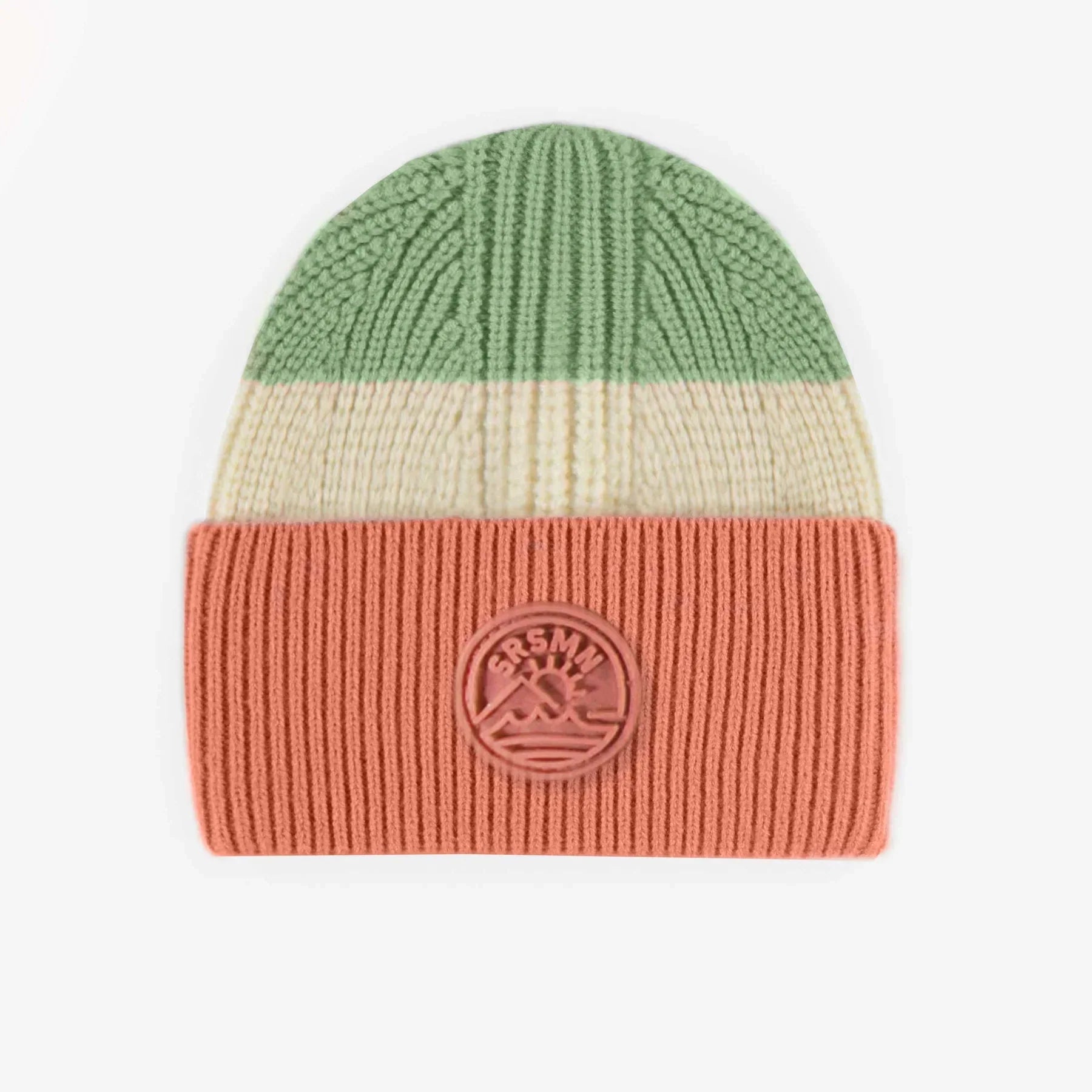 Cute and bold striped knitted toque made in a soft and warm knit of acrylic. Blends beautifully with the coats and clothes of the season!