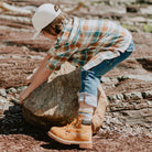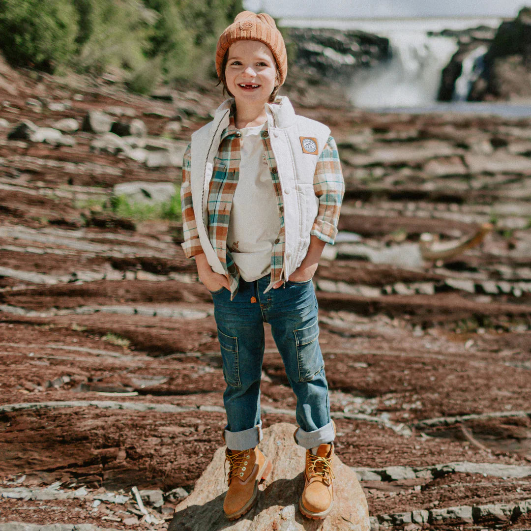 Green and brown shirt with delicate plaid made in light cotton flannel. Straight fit with large pockets at the front. This shirt is a must-have to create trendy outfits reminiscent of the 90s. Can be worn alone or with a t-shirt underneath as well as with green overalls or denim pants.