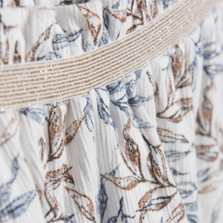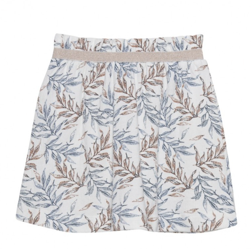 This is such a versatile skirt for your kiddo. The fabric is soft on the skin and the elastic waist helps with all the movin' and groovin' kids do. The print is subtle and neutral making it easy to wear into the fall as well.