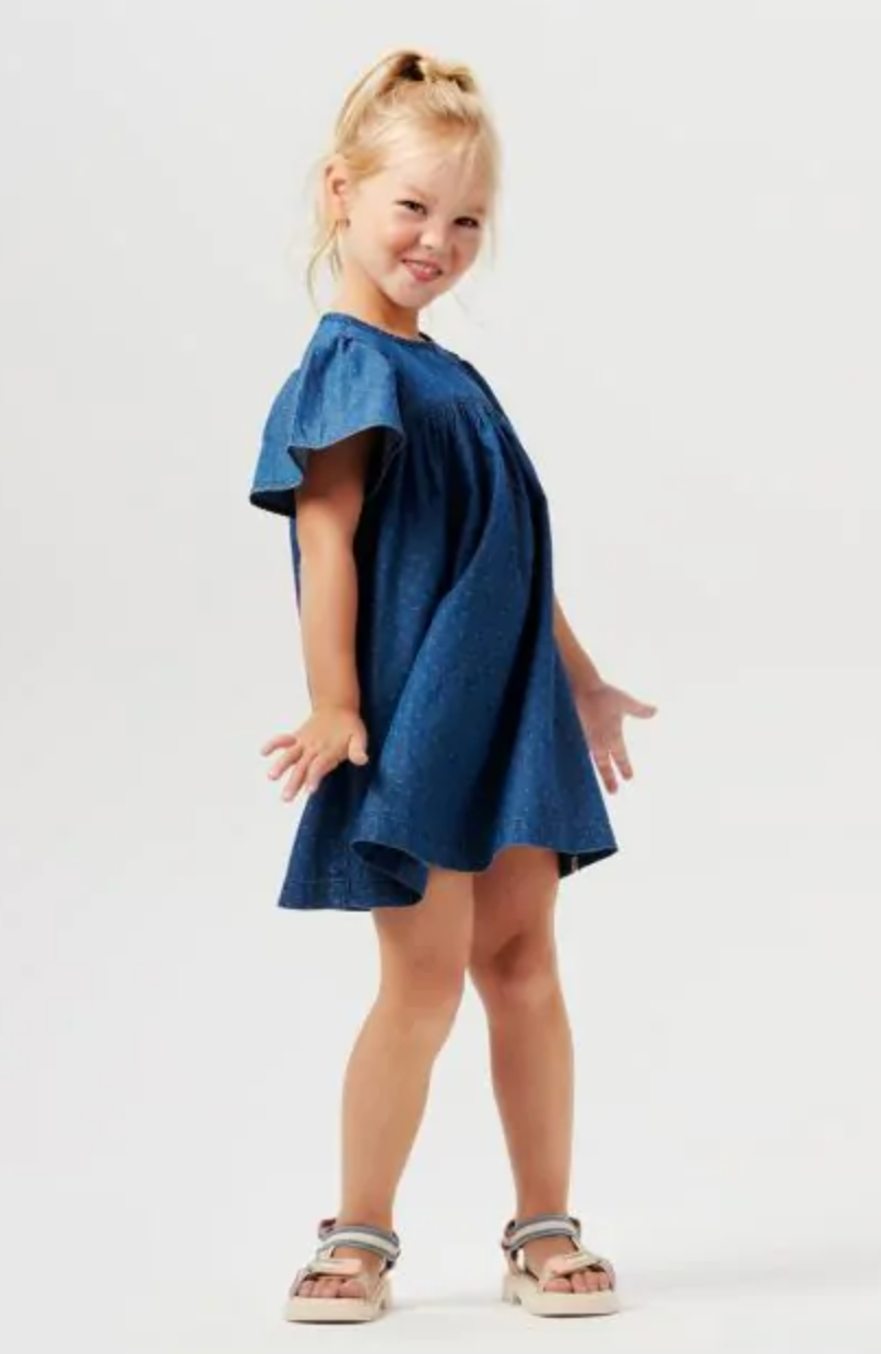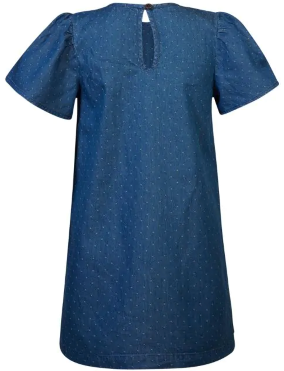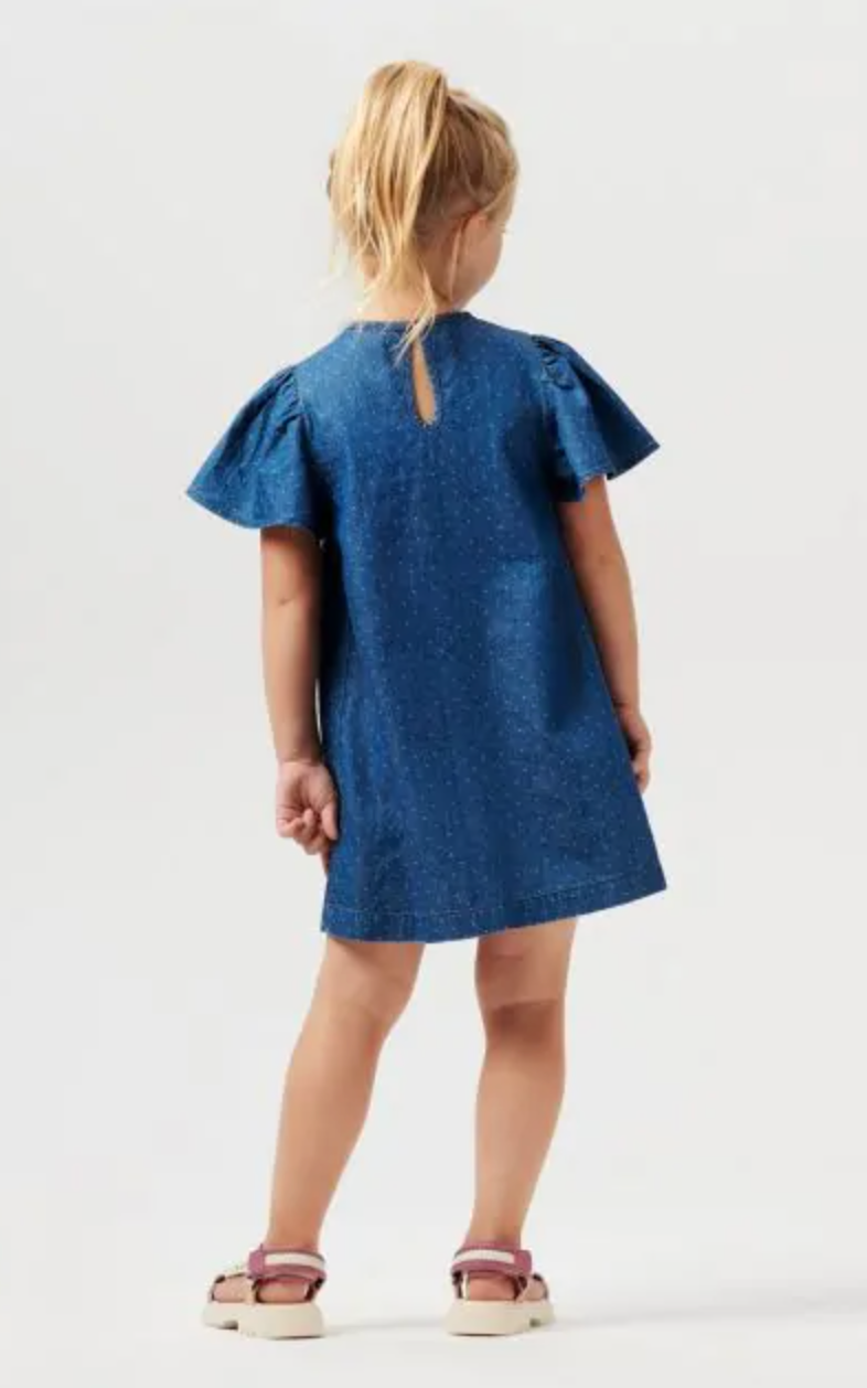 Adorable denim dress with a polka dot print from the Noppies Kids collection. The Pocola dress features an A-line fit, playful sleeves and high waist. There is a button at the back of the neckline, which makes getting dressed and undressed just that little bit easier. Would you like to see some other items with this look? It’s available as shorts too!