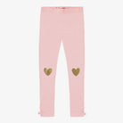 Add a little sparkle to their everyday style! These comfy Sweetheart Leggings are perfect for playtime, school, or relaxing at home. Featuring a pink and white pinstripe with shiny gold hearts on the knees, they’re as cute as they are comfy. The elastic waistband gives a snug, comfy fit that moves with your child all day long.