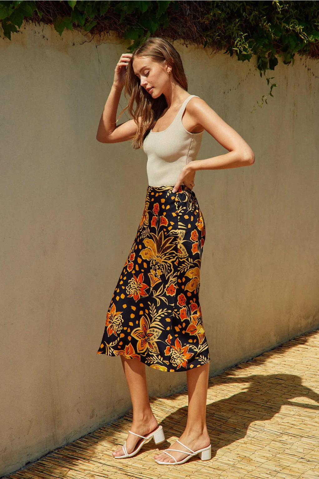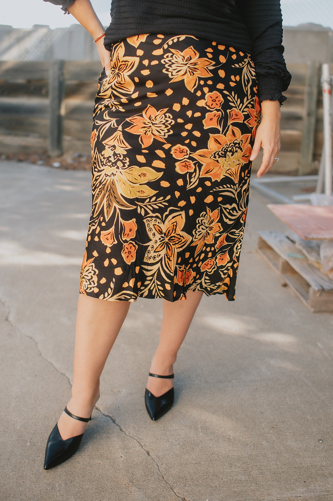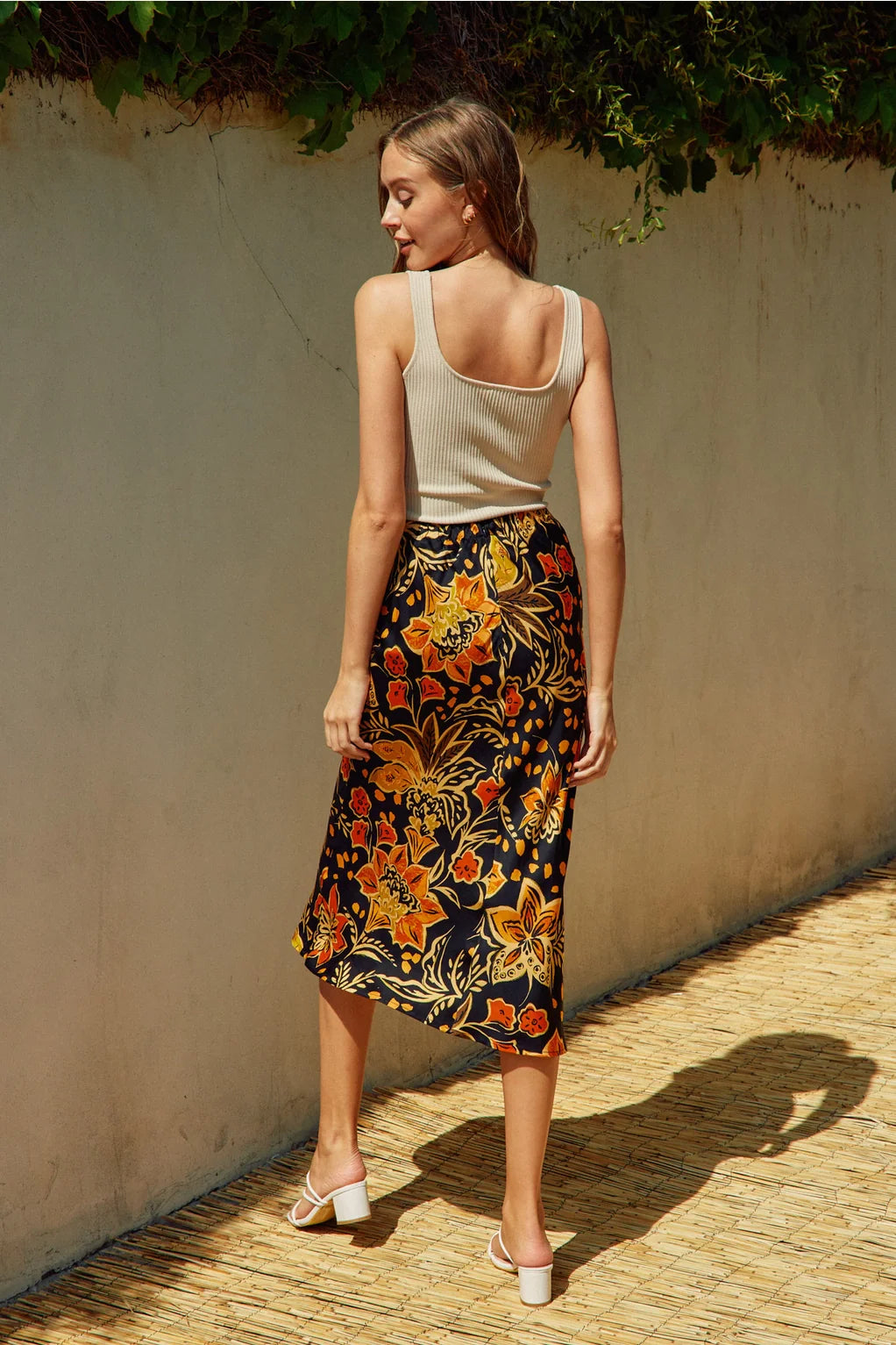The Heavenly Satin Floral Midi Skirt