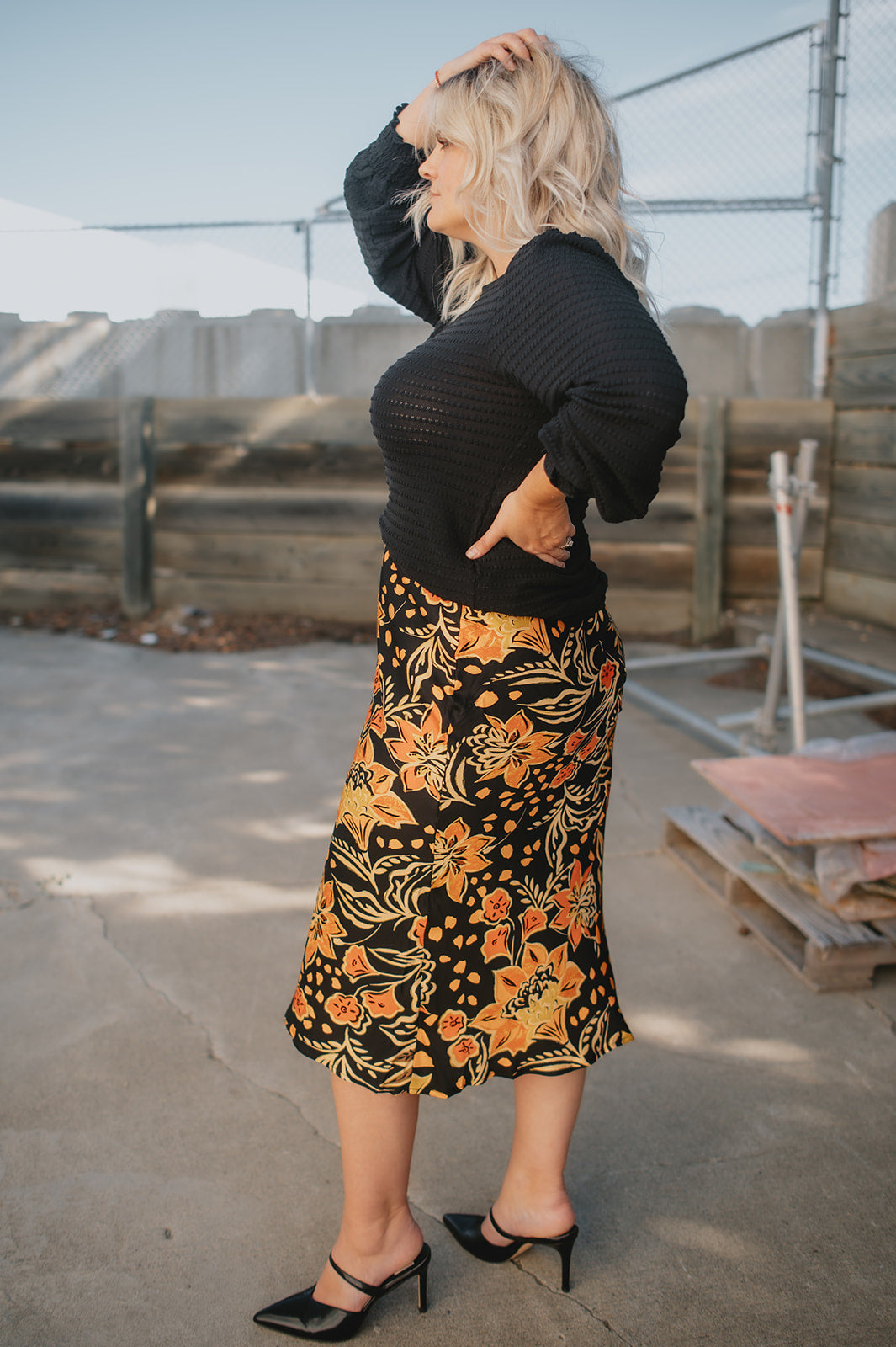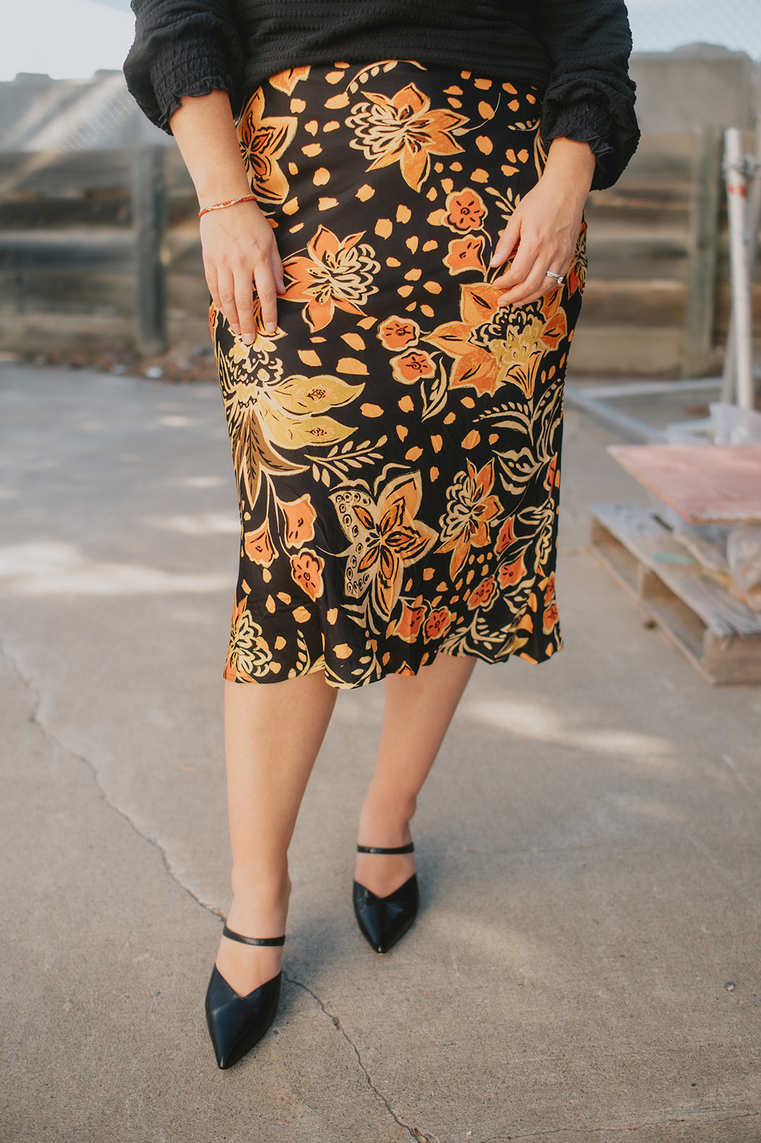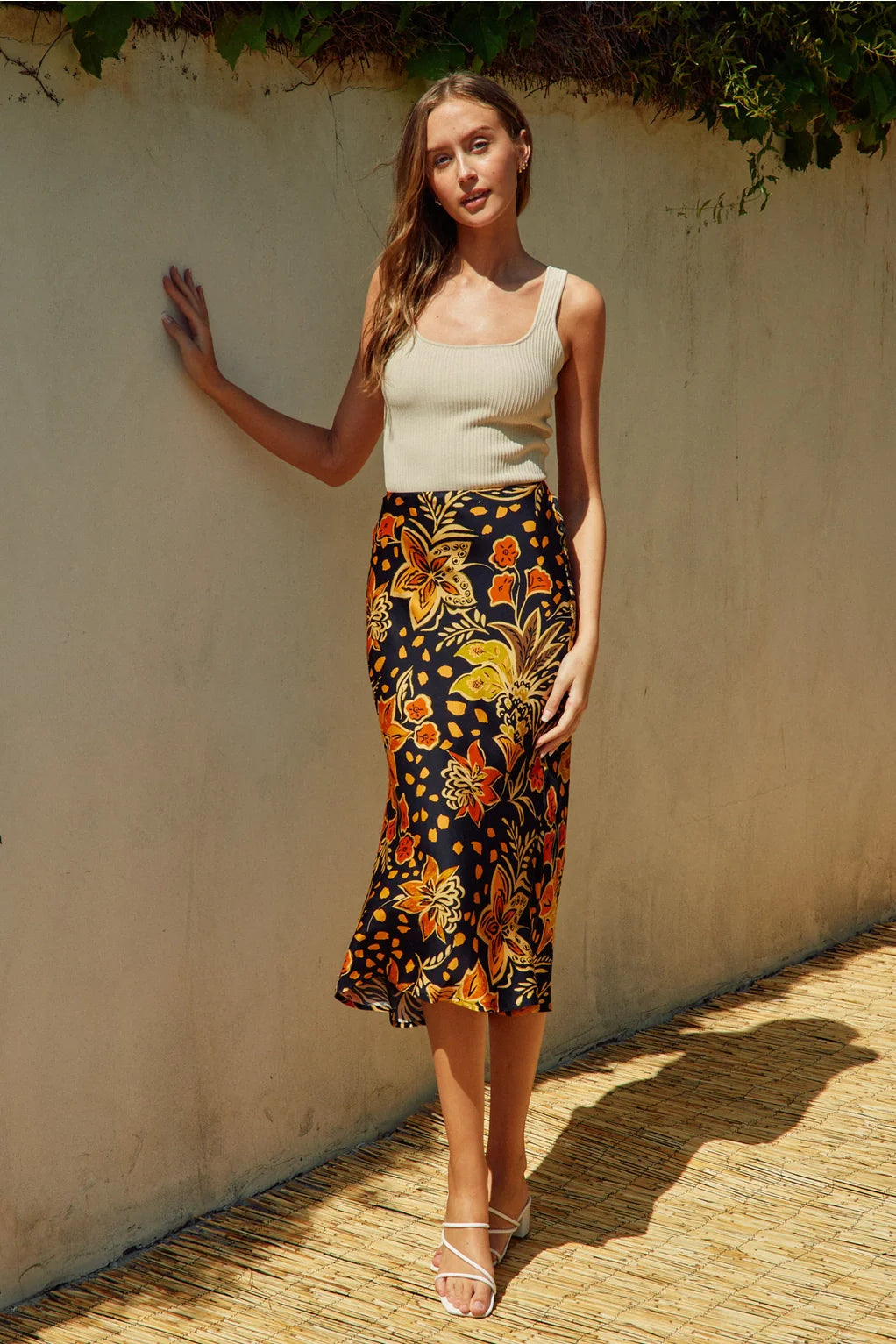 The Heavenly Satin Floral Midi Skirt