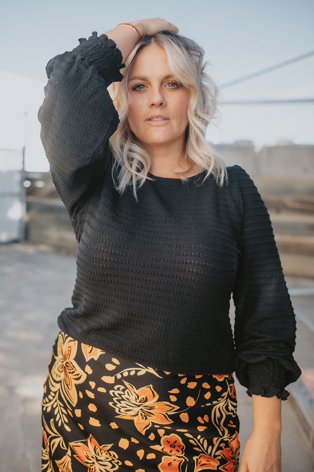 • Erinn is wearing a L and is 5'6