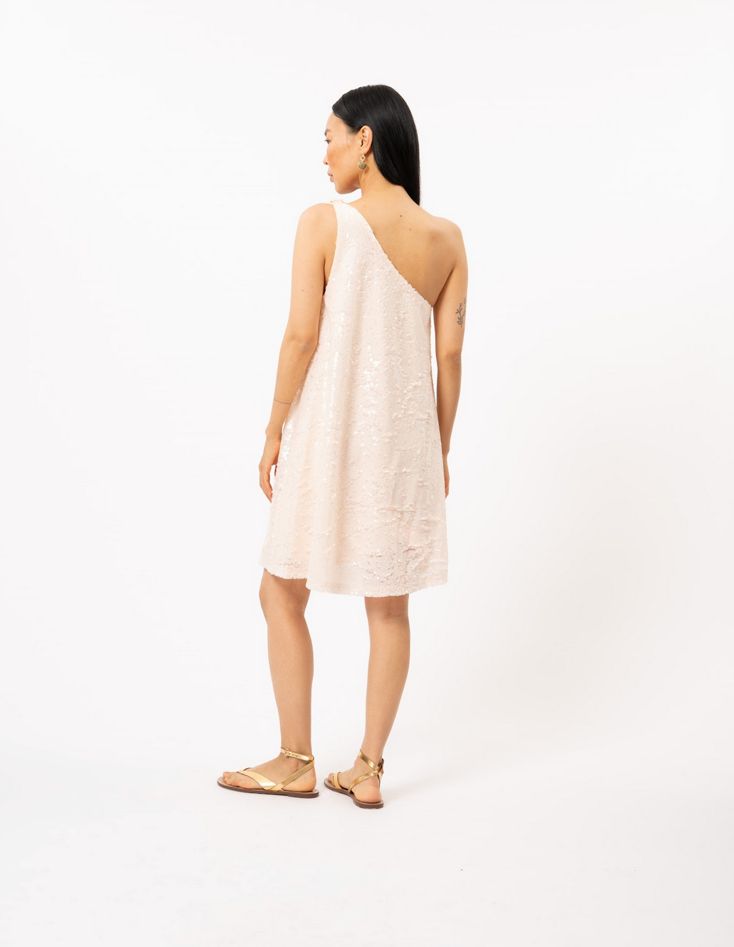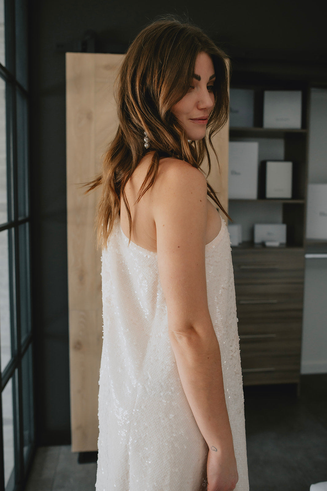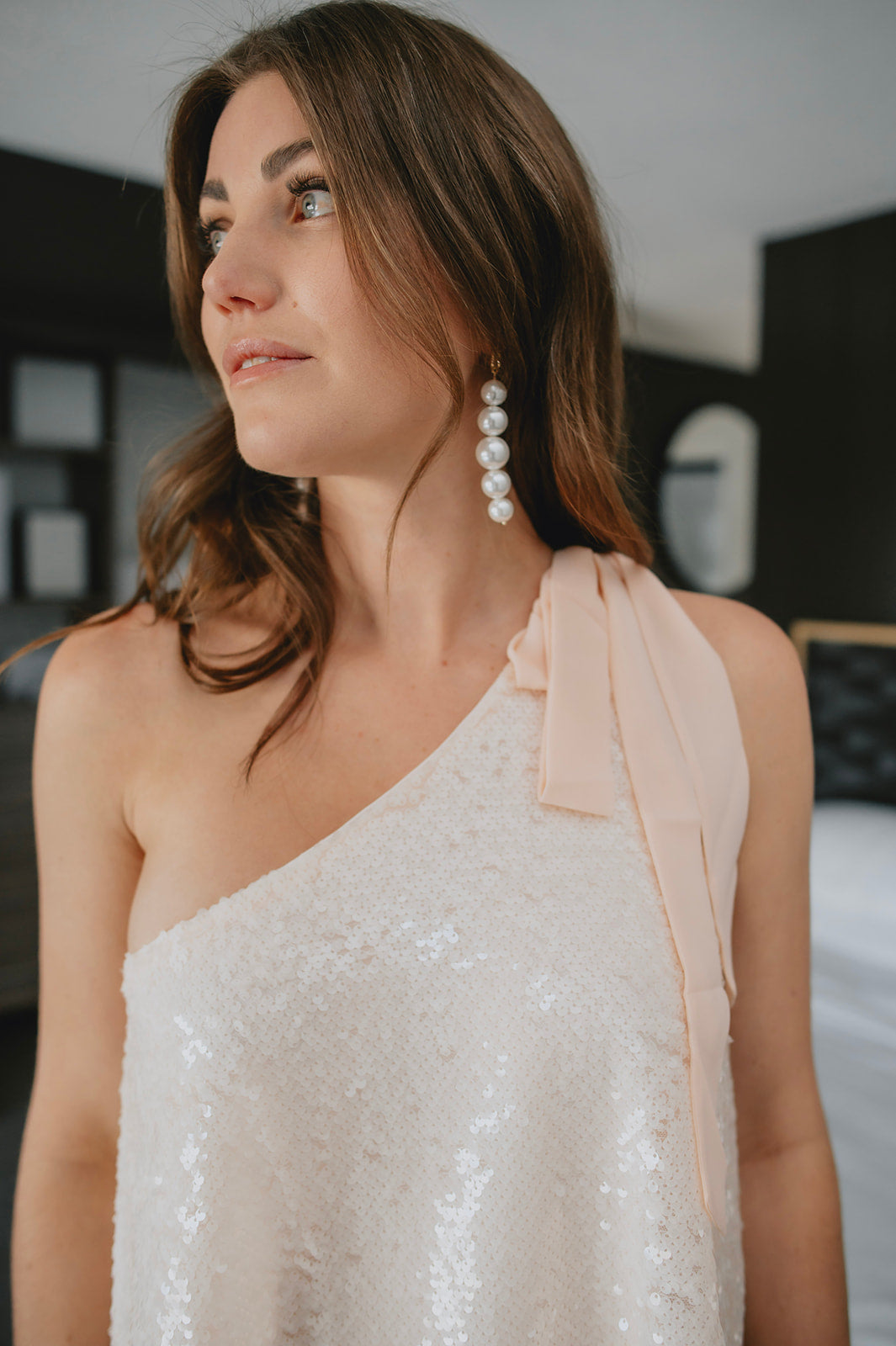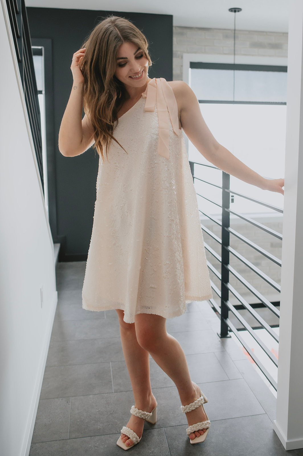 Getting married this year? Need the perfect dress for your rehearsal, shower, or bachelorette? Just looking for a fun dress for parties? Enter the spotlight with the enchanting Ariane sequined dress. This asymmetrical beauty features a charming bow on the shoulder, adding a delightful touch to your ensemble. The dress, designed in a short length with a straight cut, ensures both style and comfort. The glistening sequins accompanying the Ariane dress promise to capture attention and elevate your presence at any celebration. It's a flawless choice for those seeking a combination of modern elegance and a touch of playful charm.