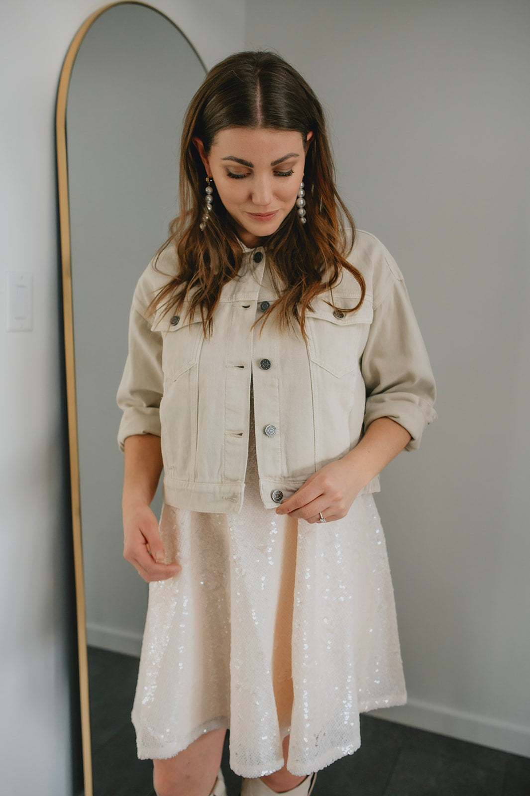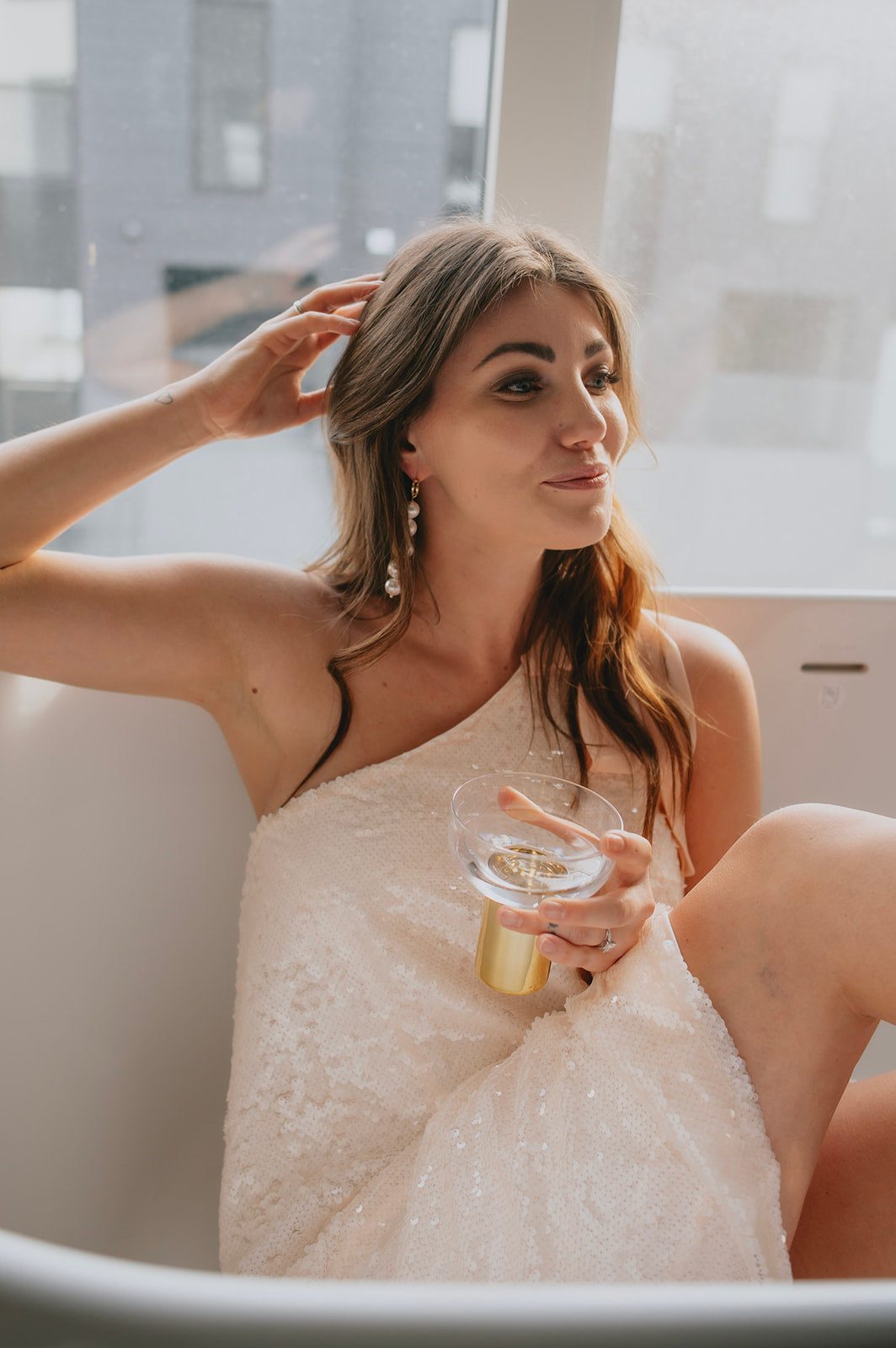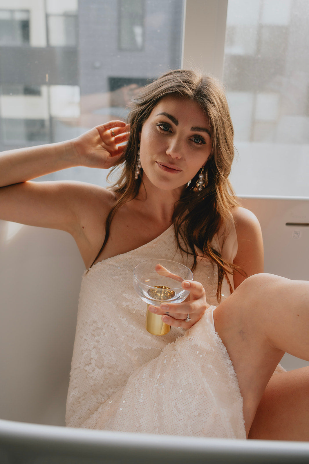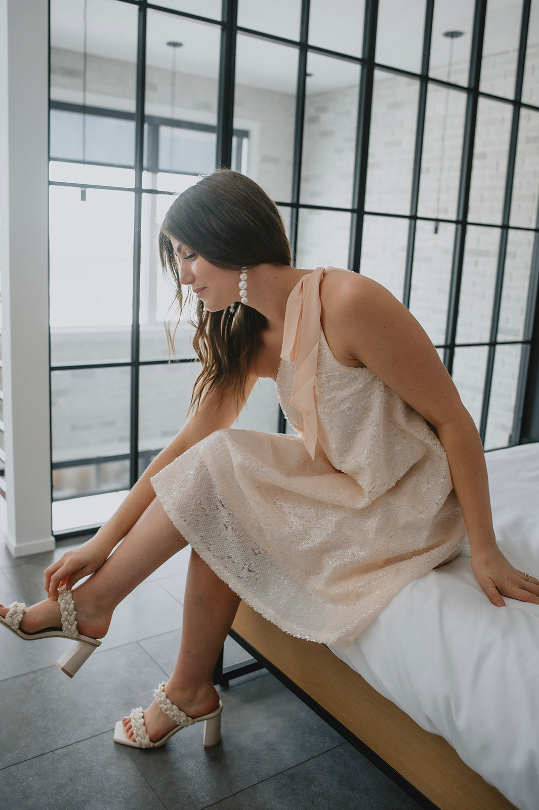 Getting married this year? Need the perfect dress for your rehearsal, shower, or bachelorette? Just looking for a fun dress for parties? Enter the spotlight with the enchanting Ariane sequined dress. This asymmetrical beauty features a charming bow on the shoulder, adding a delightful touch to your ensemble. The dress, designed in a short length with a straight cut, ensures both style and comfort. The glistening sequins accompanying the Ariane dress promise to capture attention and elevate your presence at any celebration. It's a flawless choice for those seeking a combination of modern elegance and a touch of playful charm.