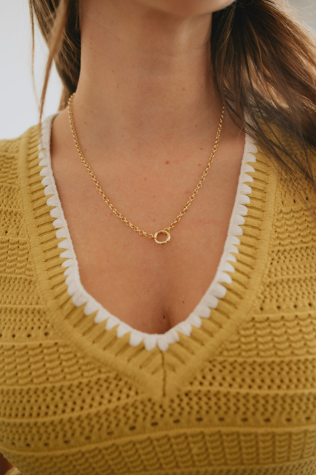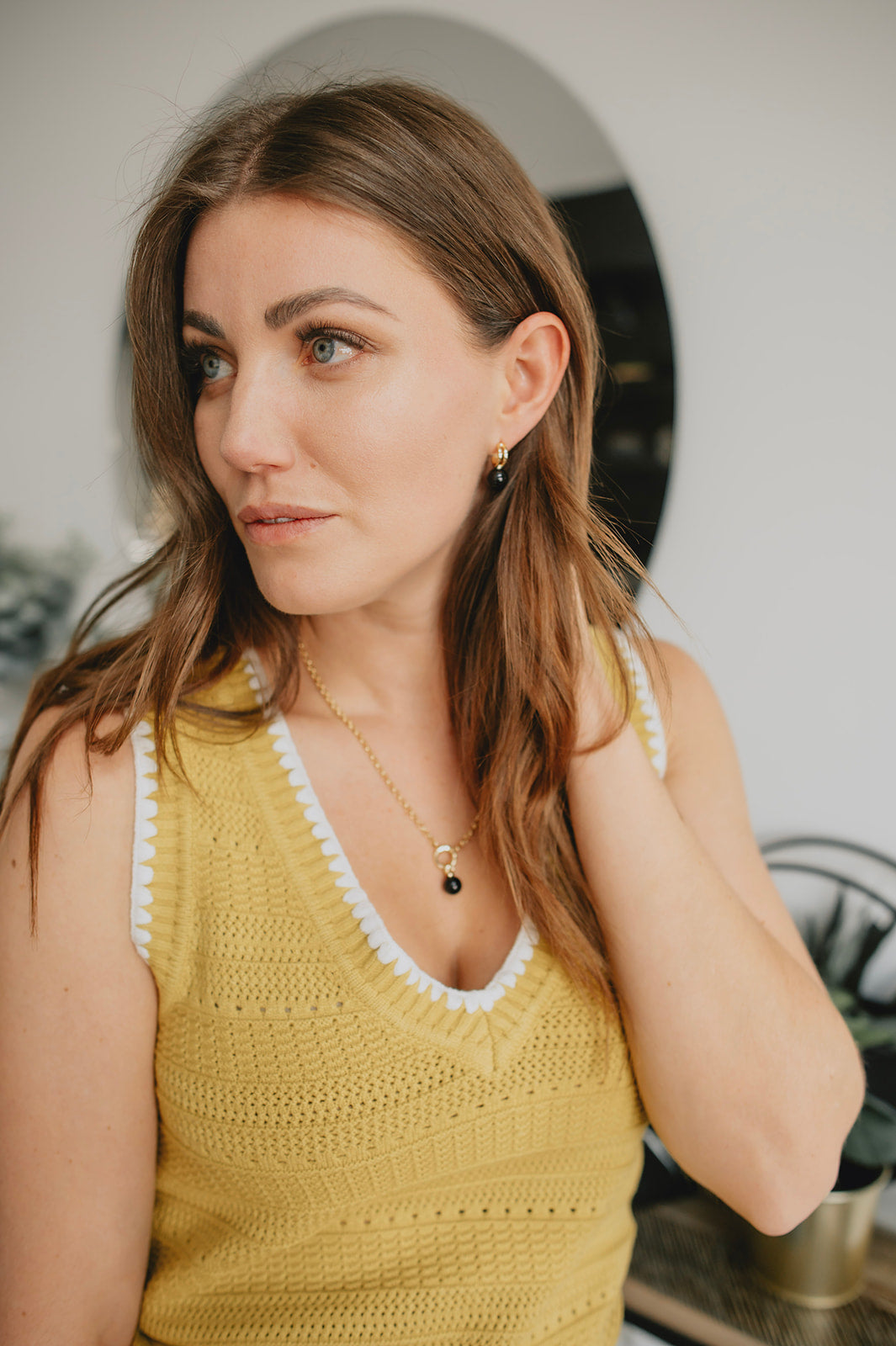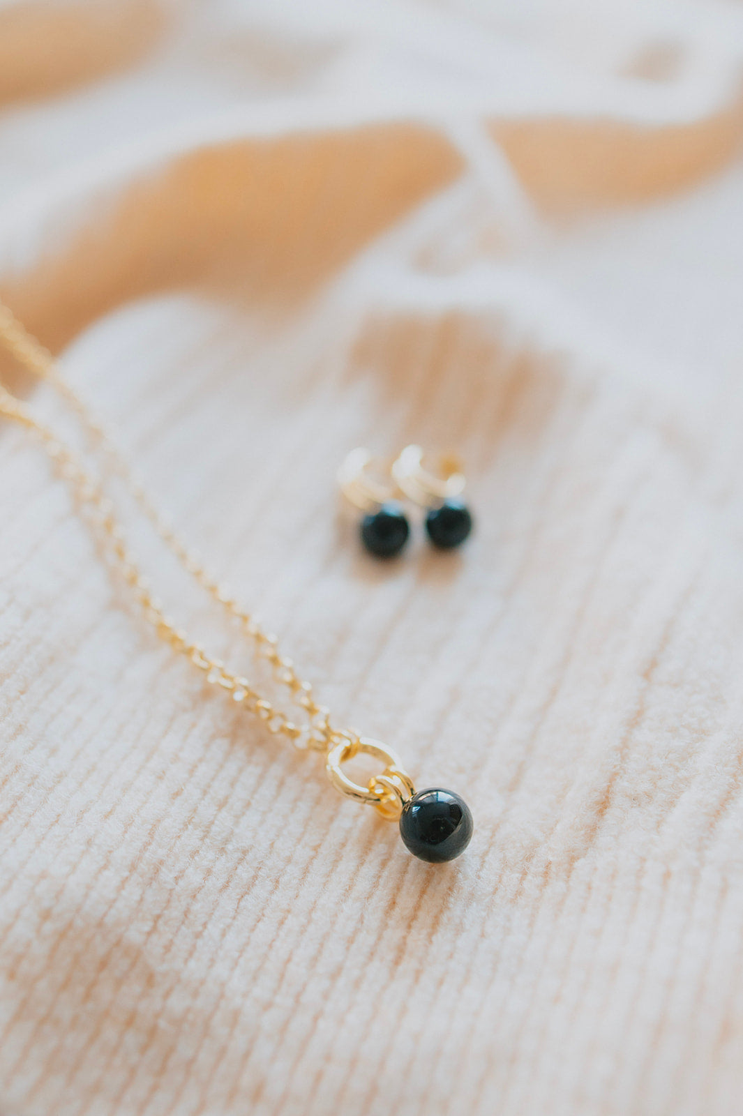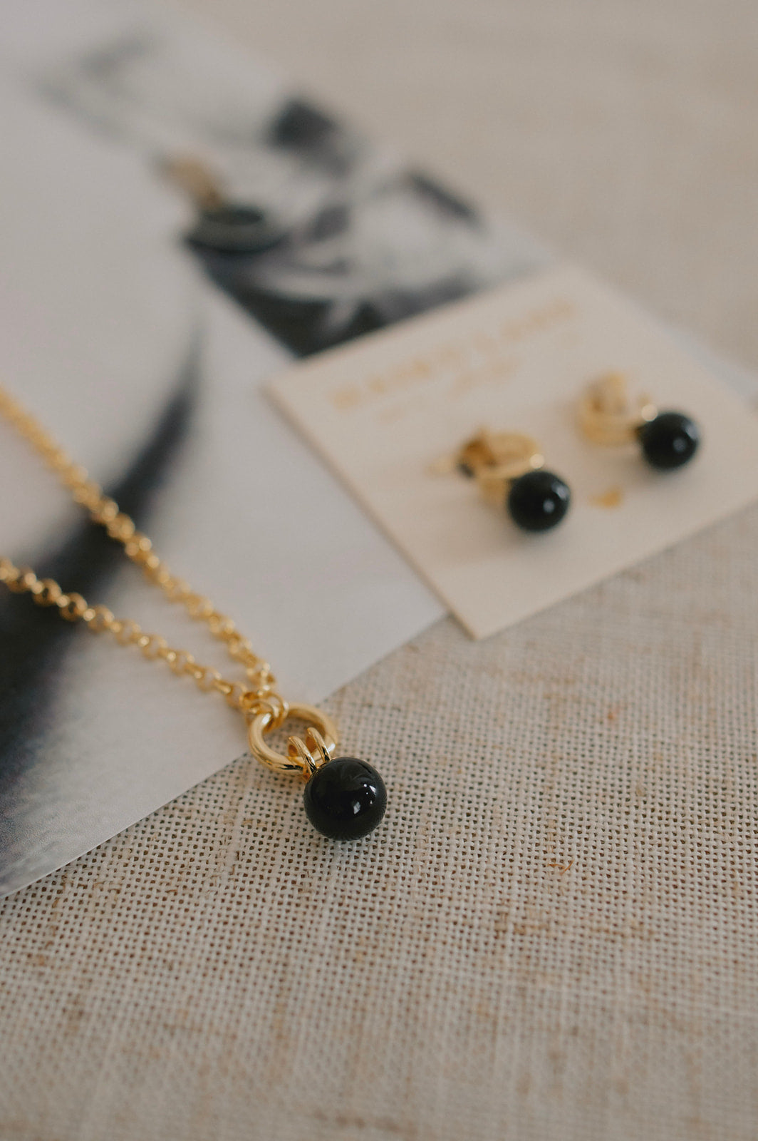 The Monroe Rolo Chain Necklace: A necklace created for both everyday wear, as well as dressed up for the most exquisite moments! Both timeless and modern, The Monroe Rolo Chain Necklace can be worn layered, solo, or even try removing the detachable Onyx Ball Charm for an entirely different look and mood! The toggle clasp was also designed to be worn solo OR with the charm, and we can't decided which way we love more!