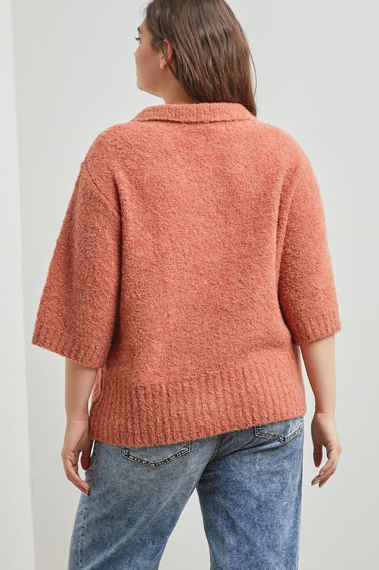 The Tori Boucle Polo Top - Terracotta - PLUS