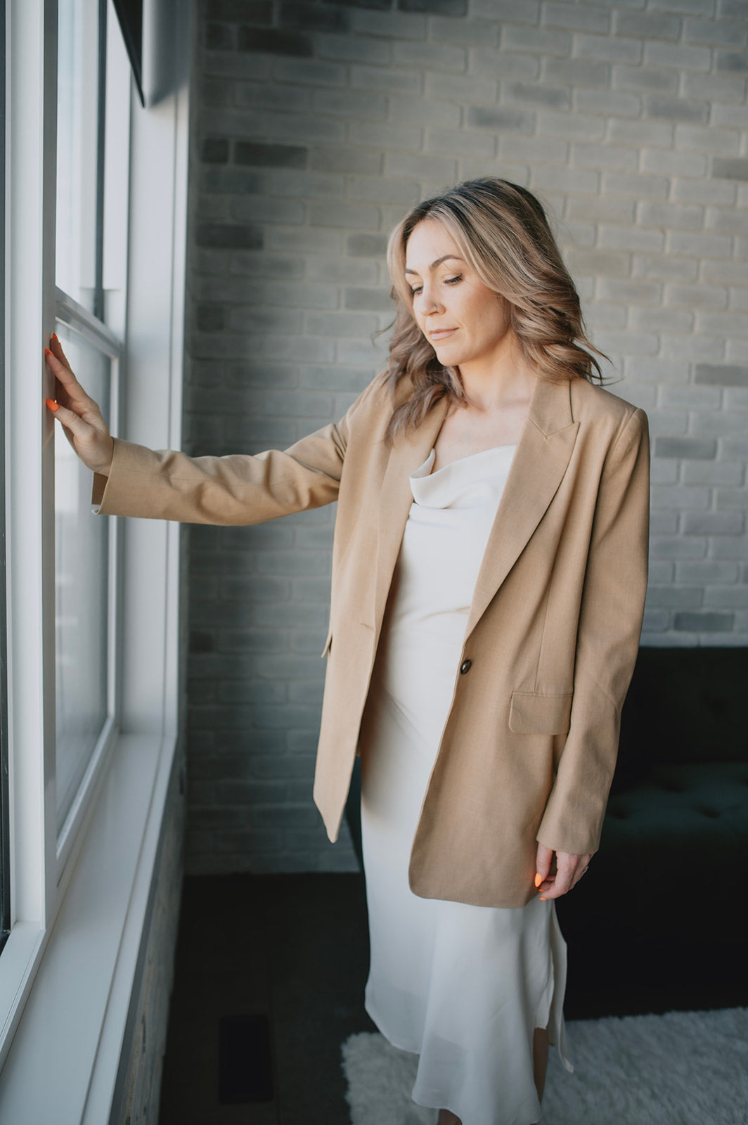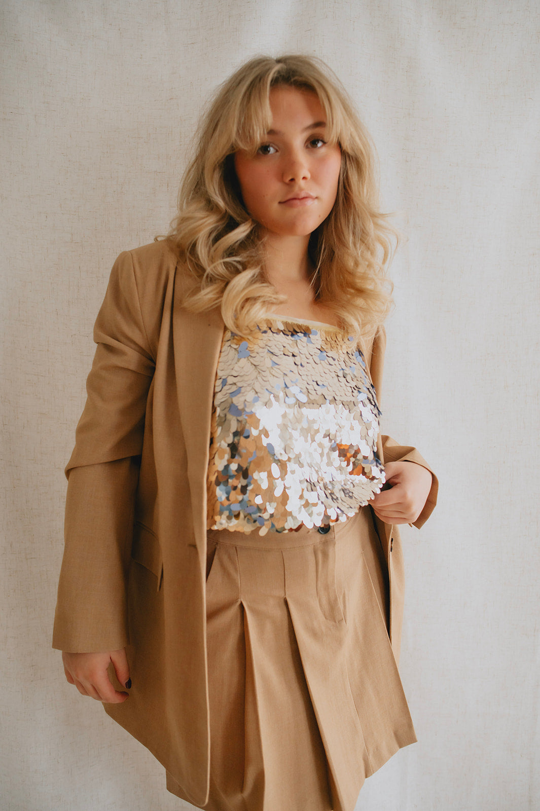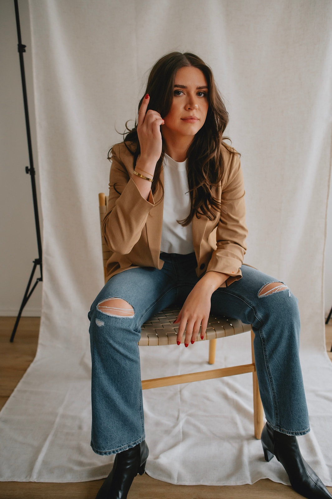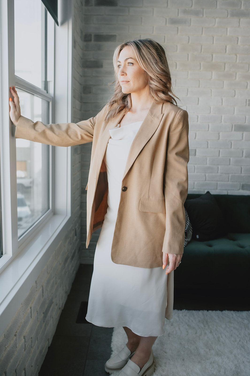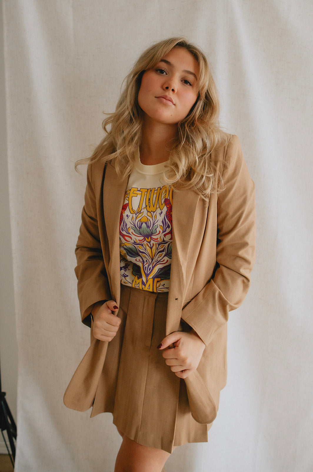 We're suckers for a good blazer. The length and colour is what sold us on this beauty! Slightly longer in through the body gives her a touch of modern femininity and the neutral tone keeps her easy to dress up and down. An instant classic!