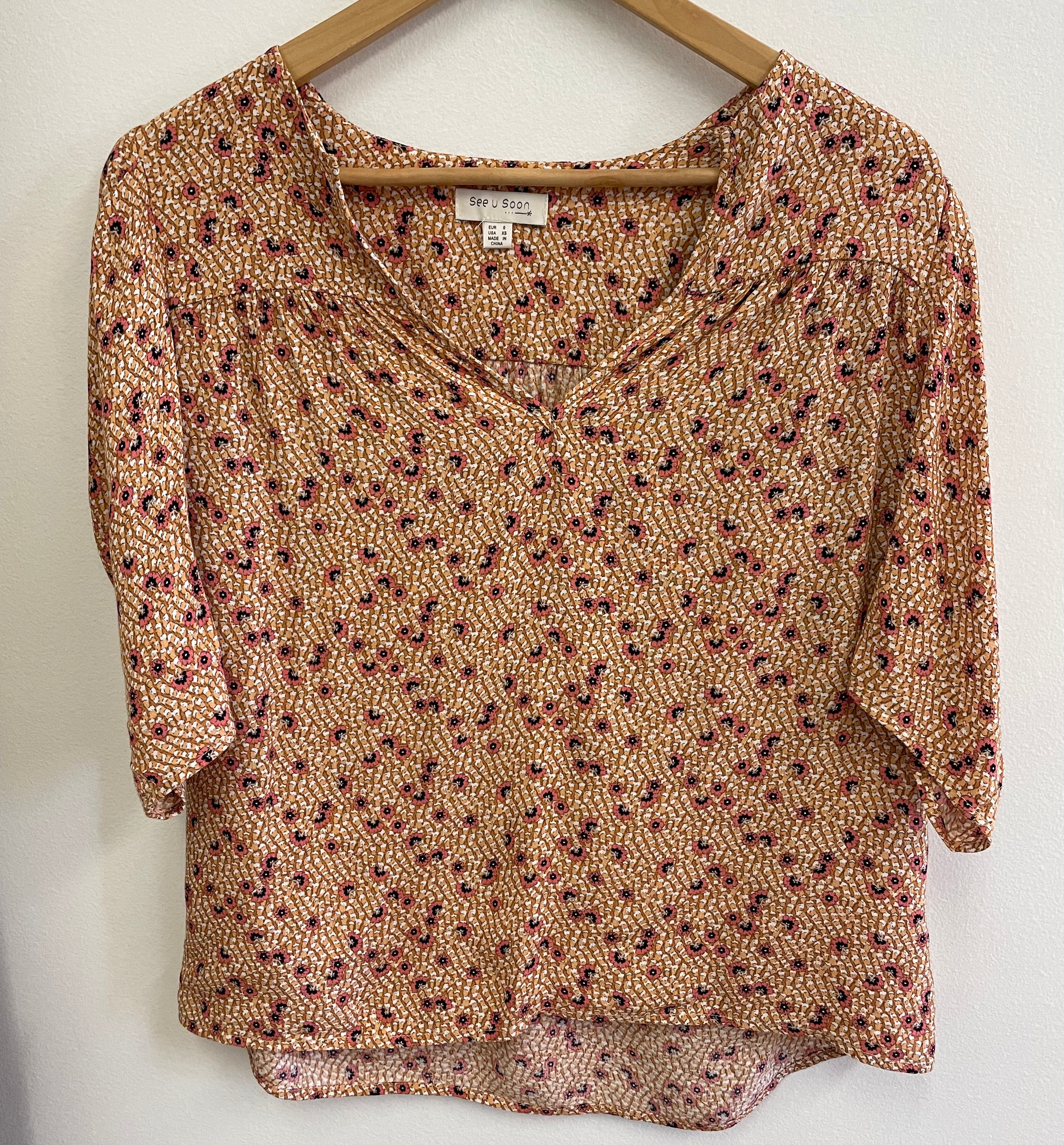 Featuring a delicate floral print, this blouse adds a touch of nature-inspired charm to your outfit. Whether you tuck it into high-waisted jeans or let it flow over tailored trousers, it’s a versatile piece you’ll reach for again and again.