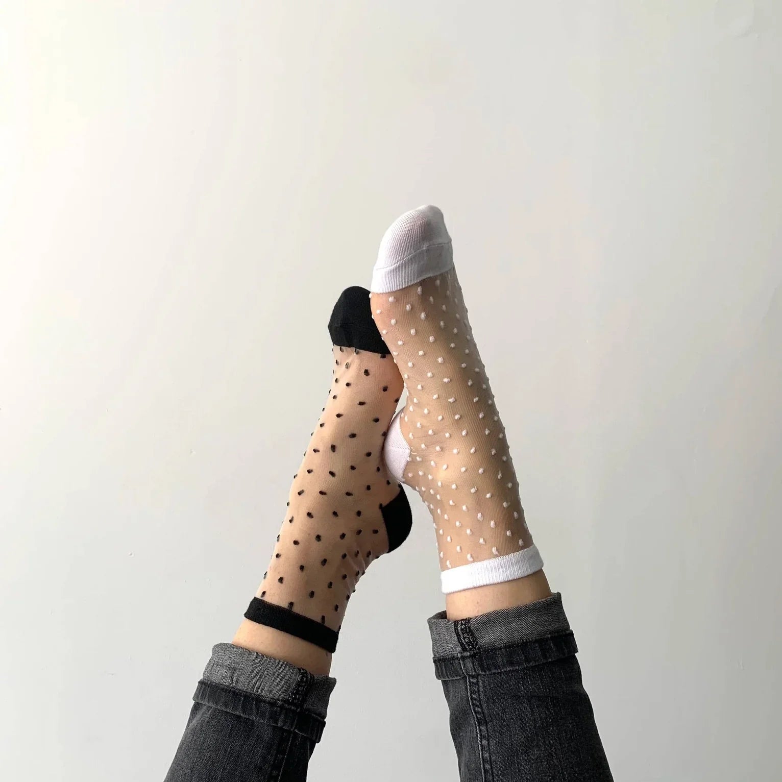 The Charlotte Transparent Polka Dot Socks - White