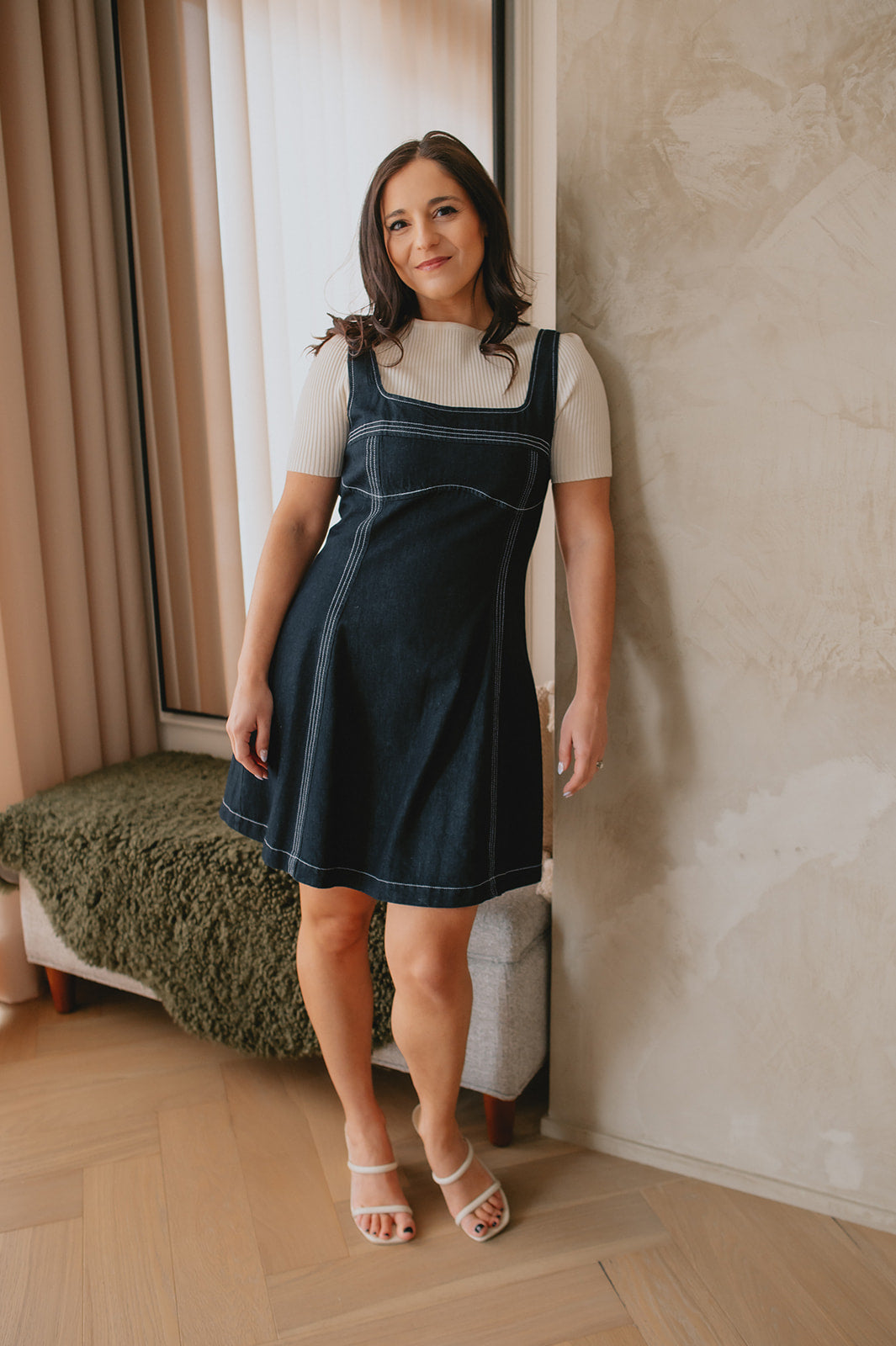sEffortlessly cool with a timeless edge, the Downton Denim Mini Dress is your go-to for everyday styling. Designed in a flattering A-line silhouette, it skims the body while offering comfortable movement. The sleeveless cut keeps it modern and versatile, perfect for warm days or easy layering.