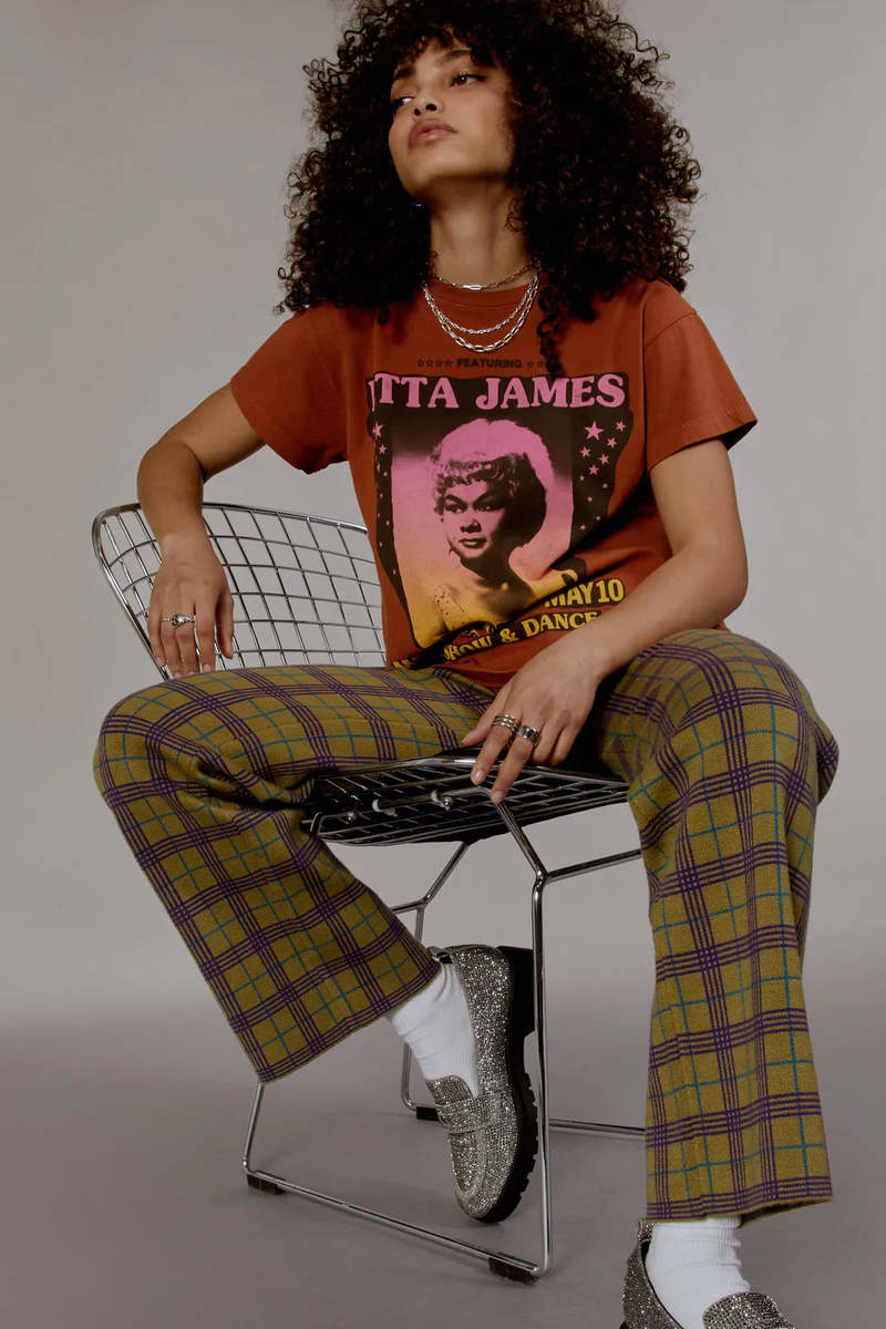 Ahem, a quick shoutout to the singles that soared her career - At Last, Tell Mama, Id Rather Go Blind and many more. Giving nod to the stars seventh studio album and single of the same name is the Etta James Tell Mama Tour Tee featuring an authentic poster style portrait of the icon designed in colours inspired by the album cover and accented in stars.