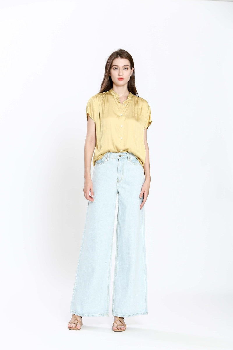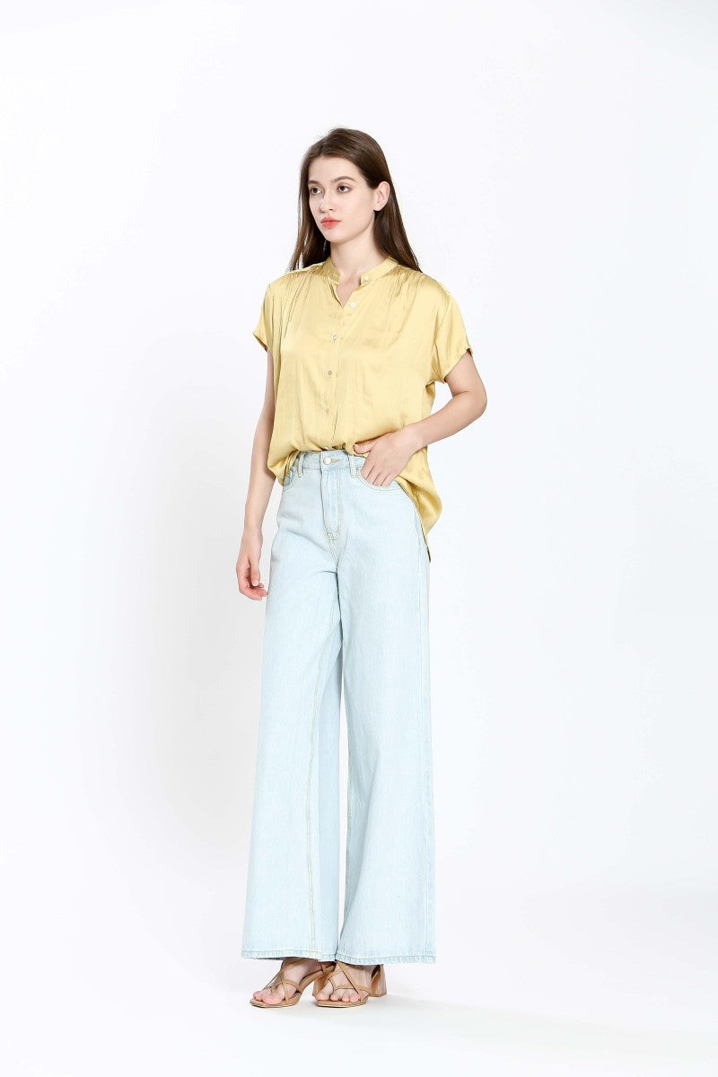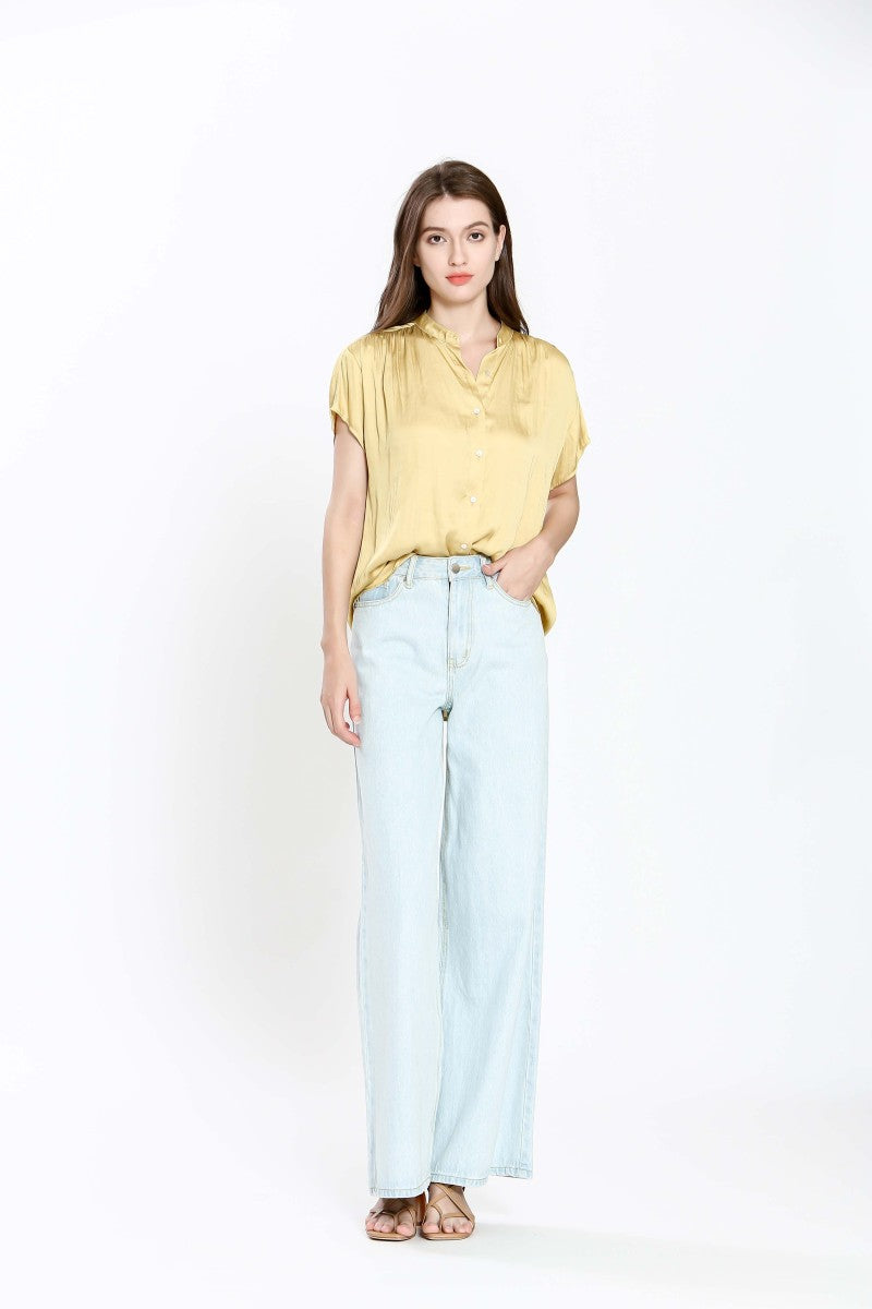 The Imala Short Sleeve Fluid Blouse - Yellow