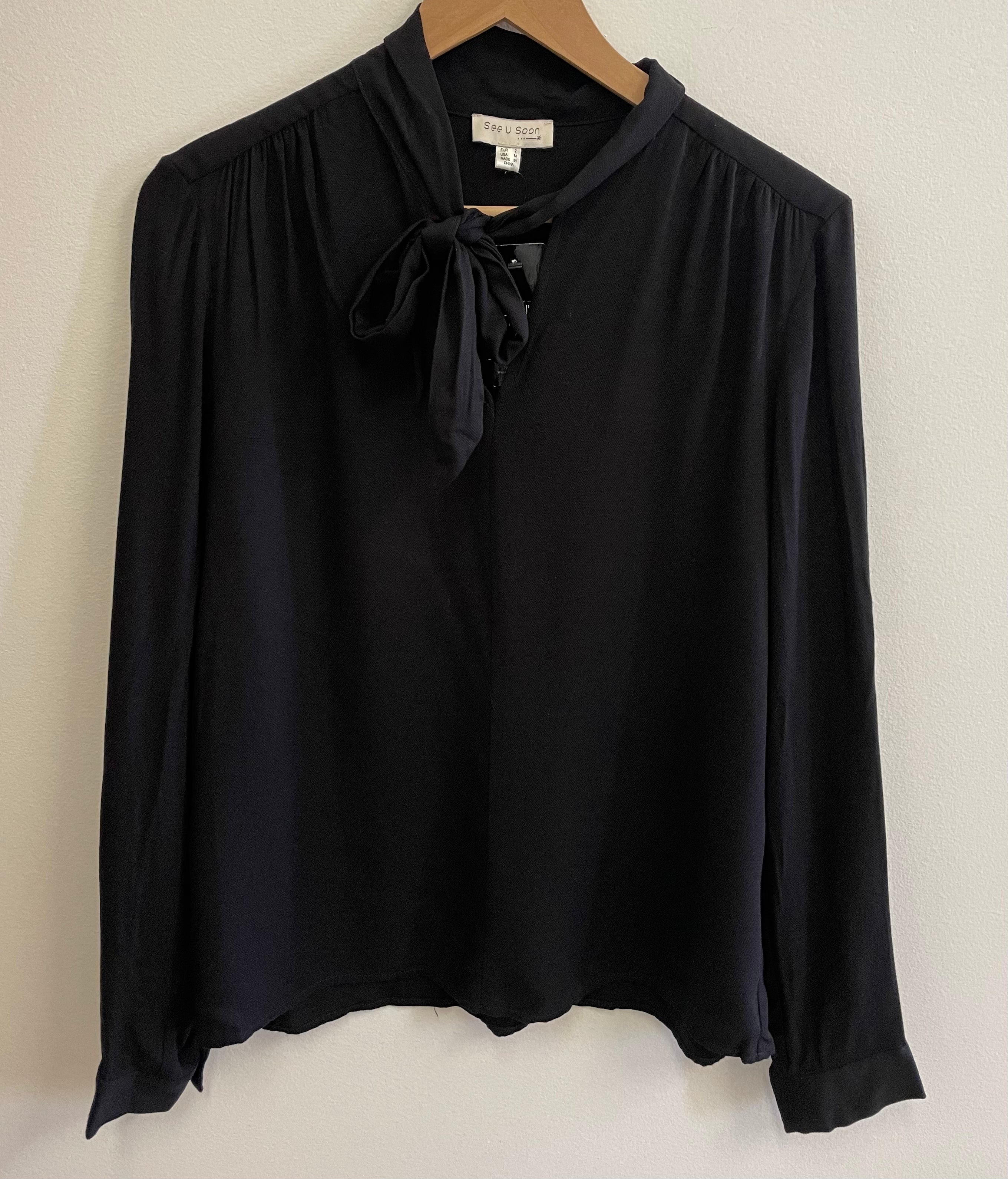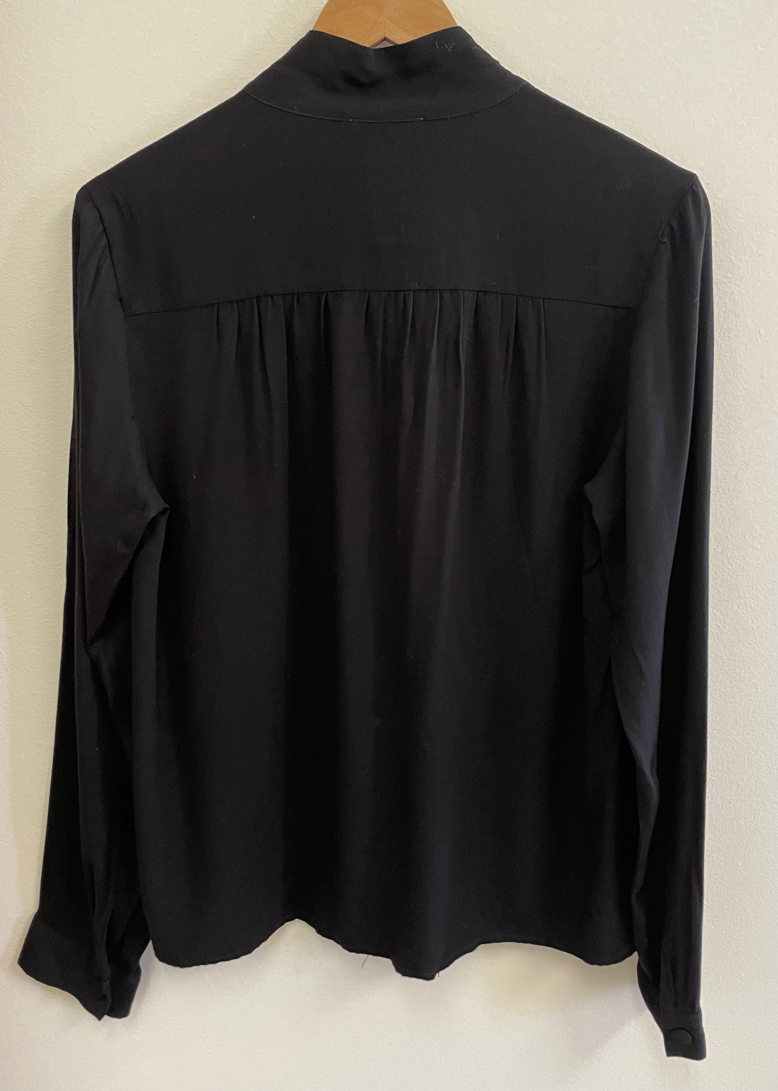 Chic and timeless, the Ivana Blouse features long sleeves and a flattering V-neckline, perfectly complemented by a delicate tie collar for added sophistication. Crafted from flowy fabric, it drapes beautifully for both professional and casual settings. The tie detail allows for versatile styling — wear it in a neat bow for a polished look or let it hang loosely for a more relaxed, effortless vibe.