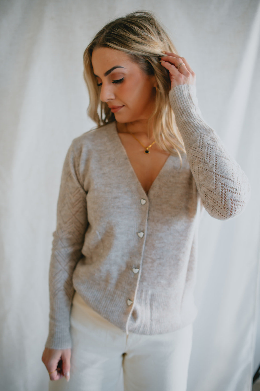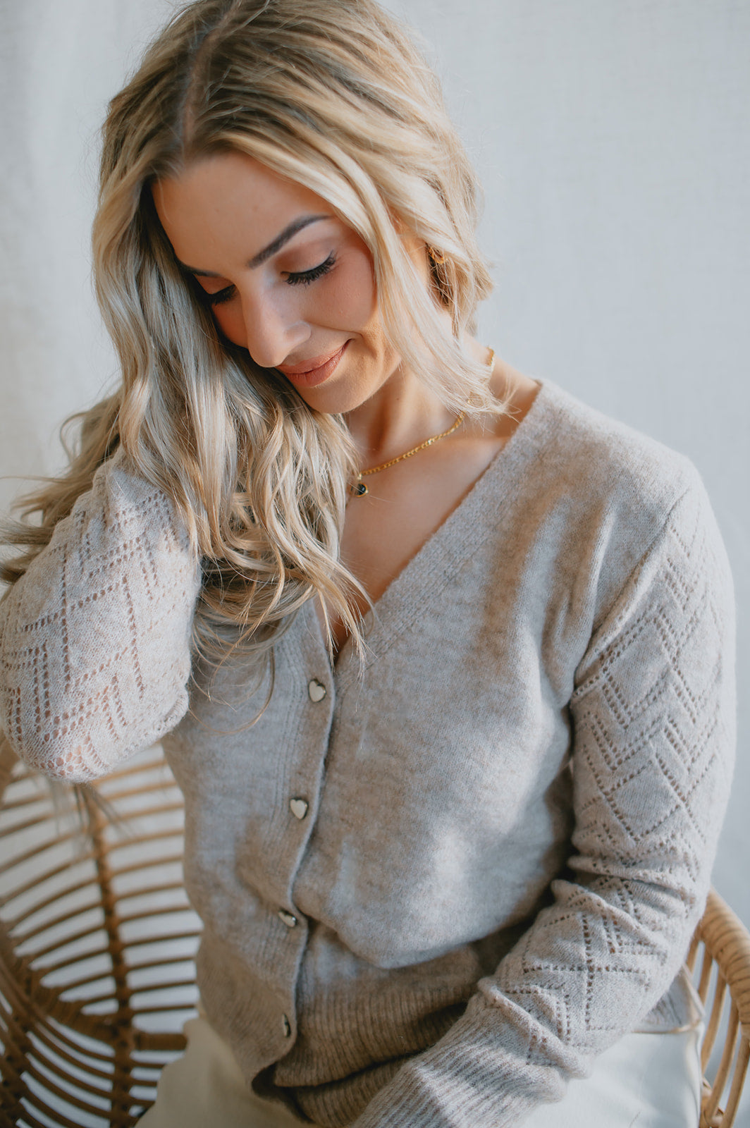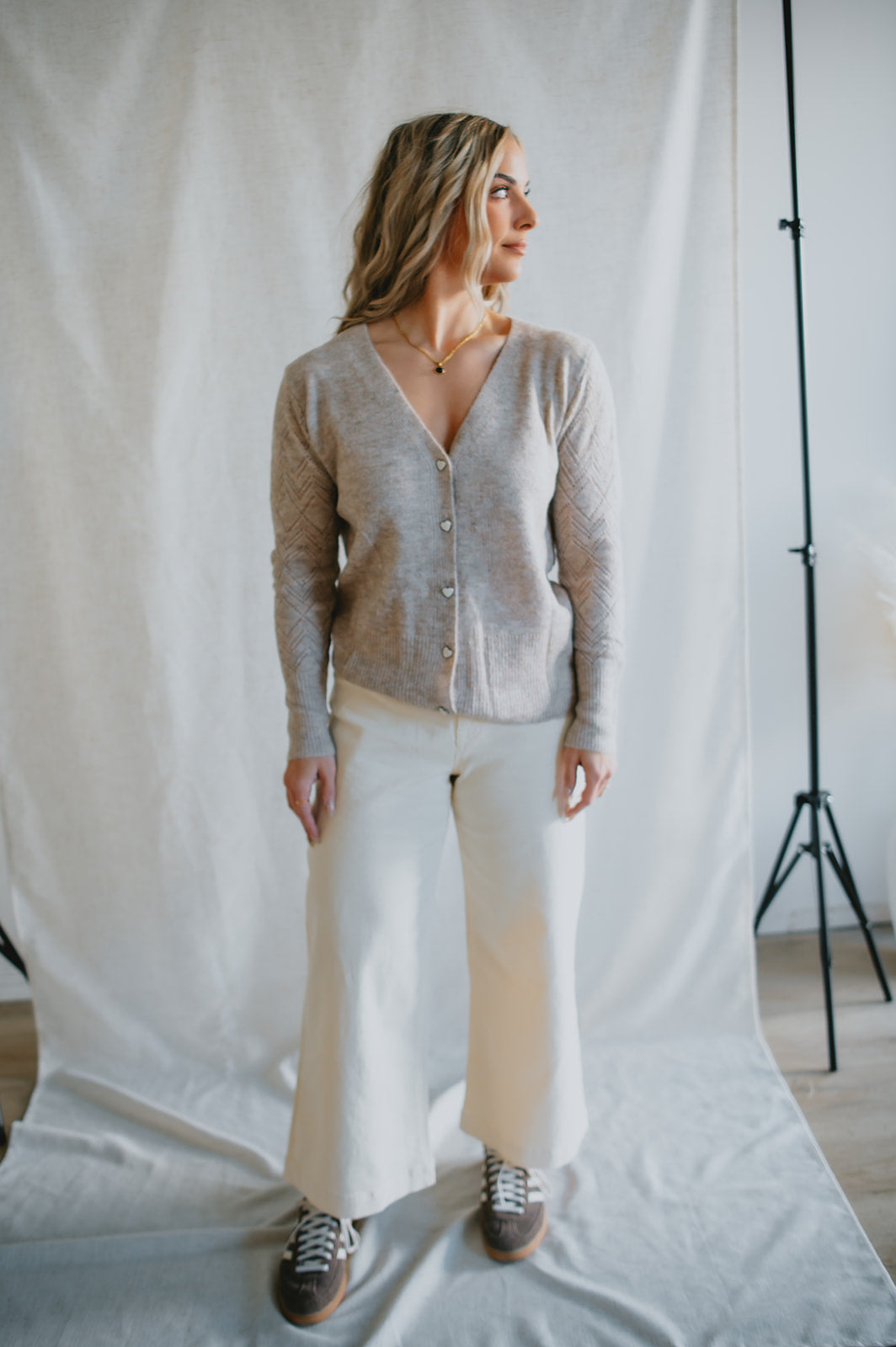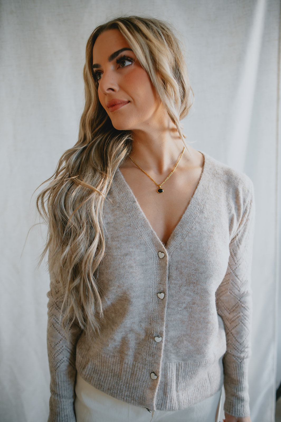 The Knitted Heart Button Cardigan - Oatmeal Beige