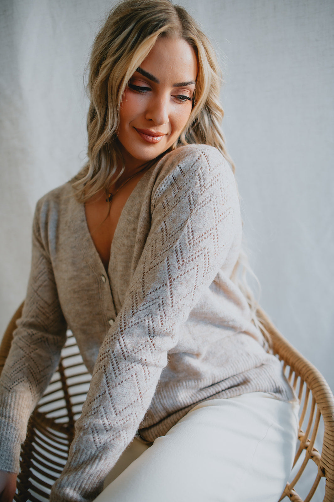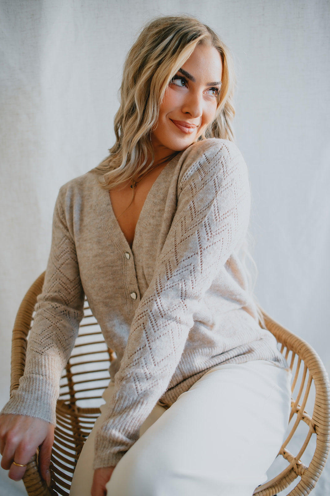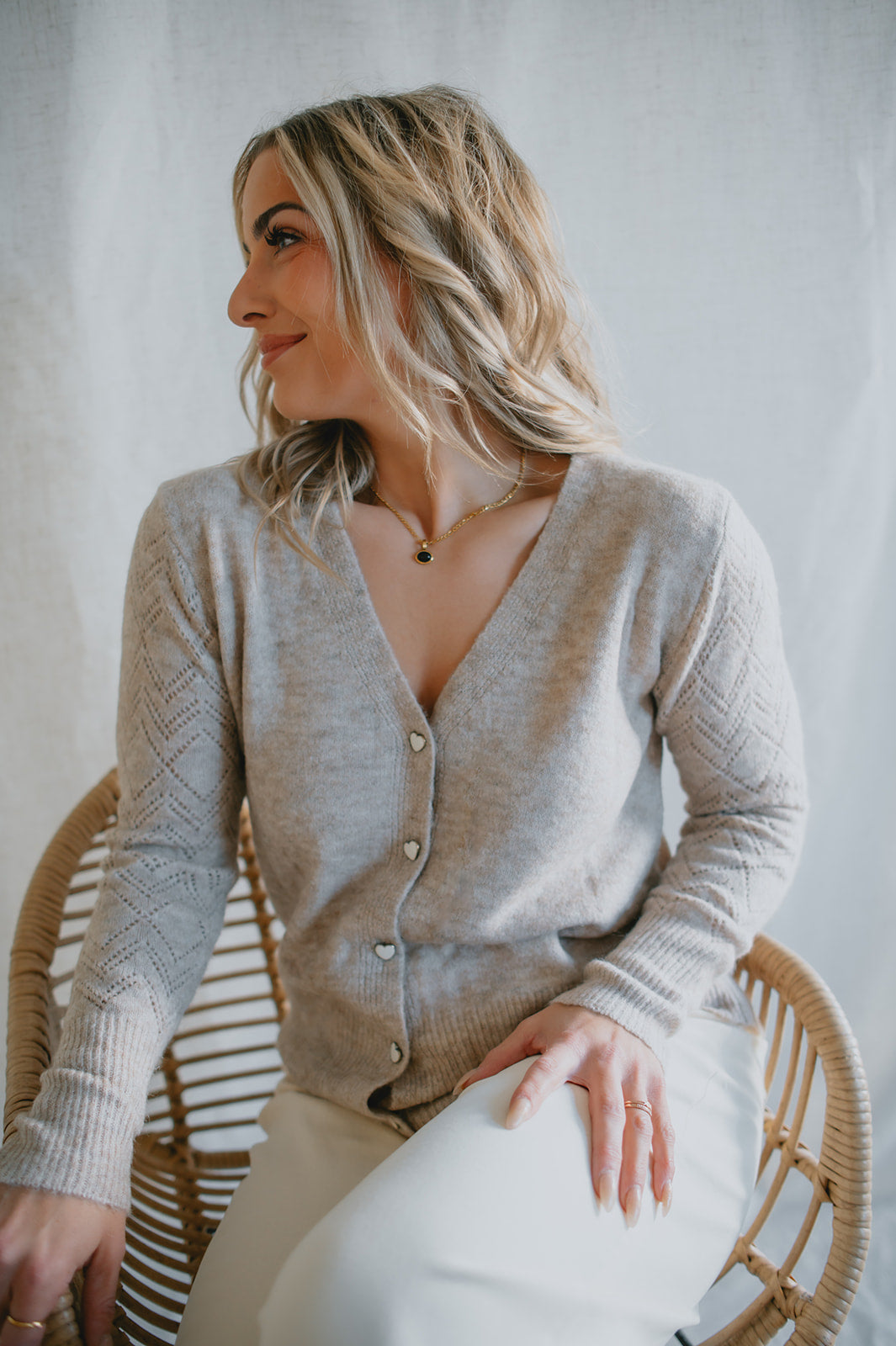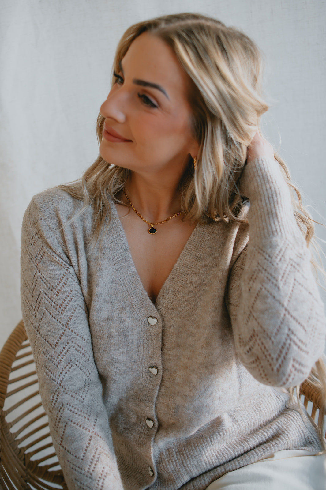 The Knitted Heart Button Cardigan - Oatmeal Beige