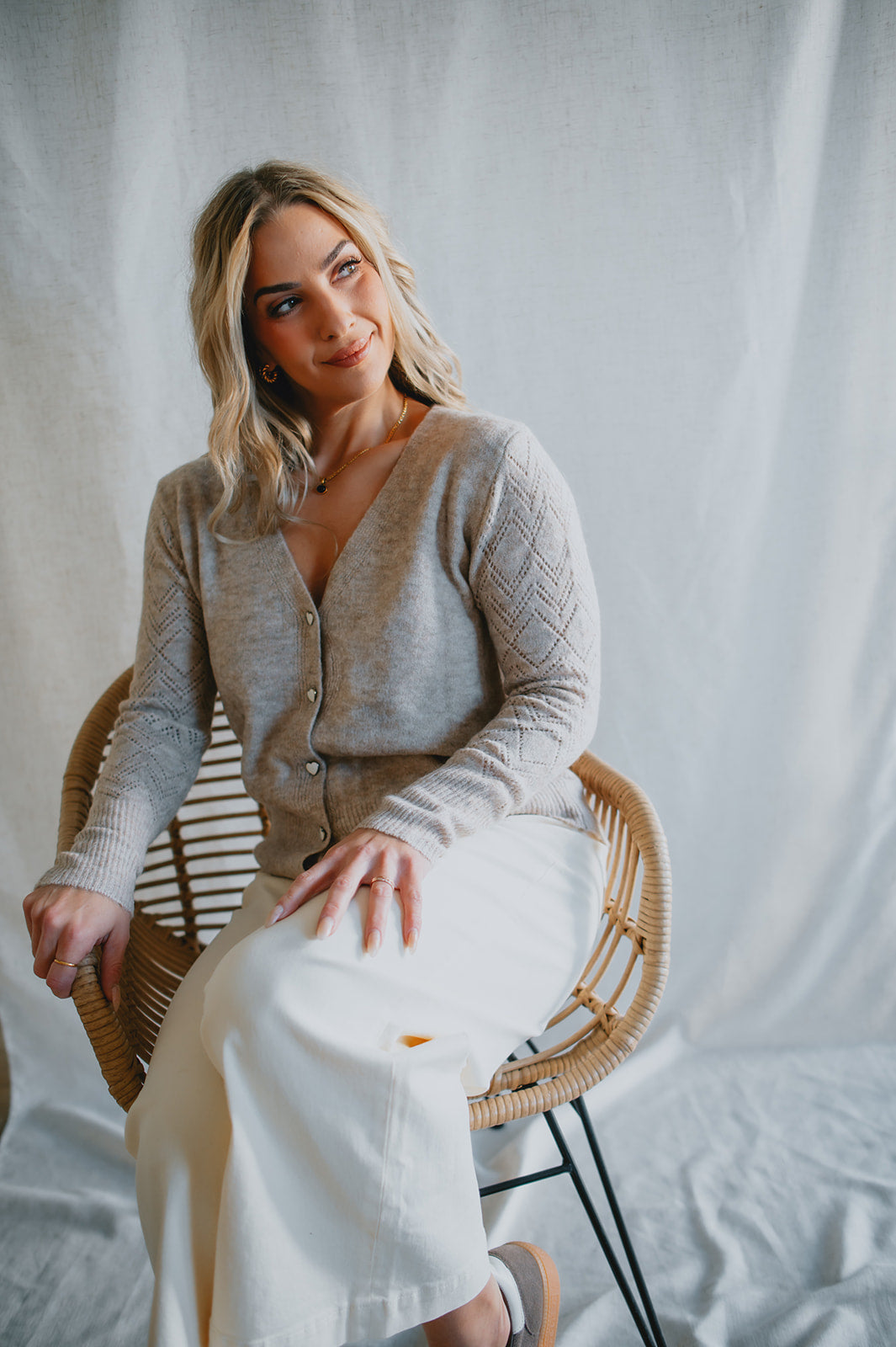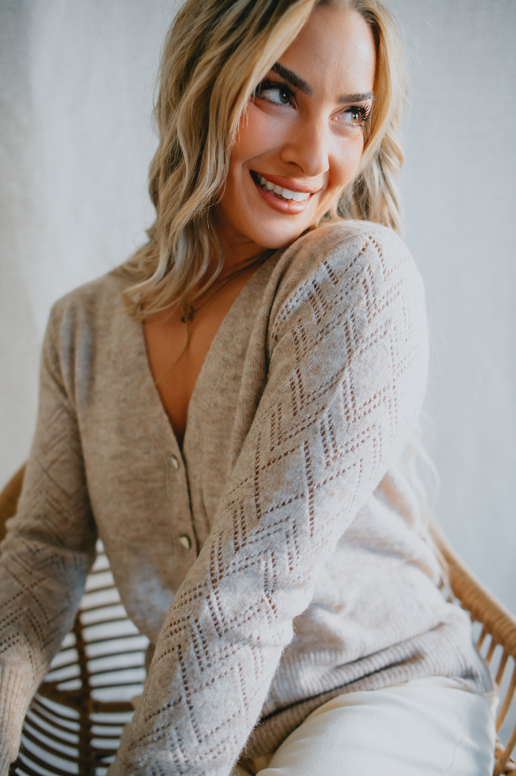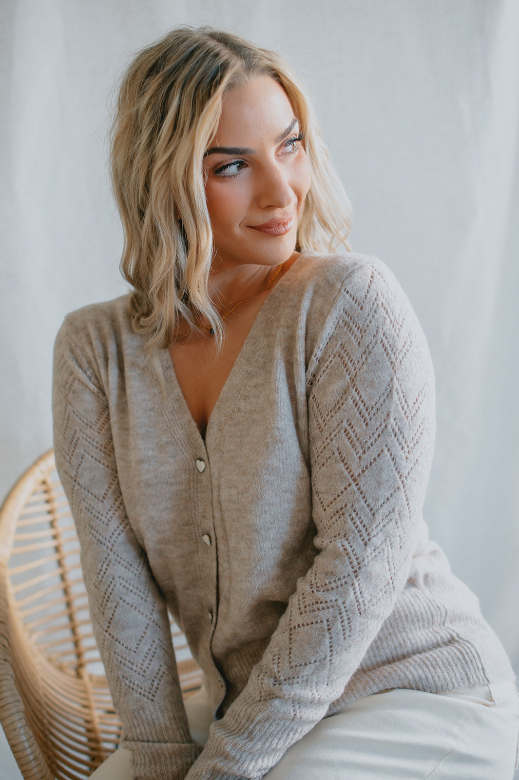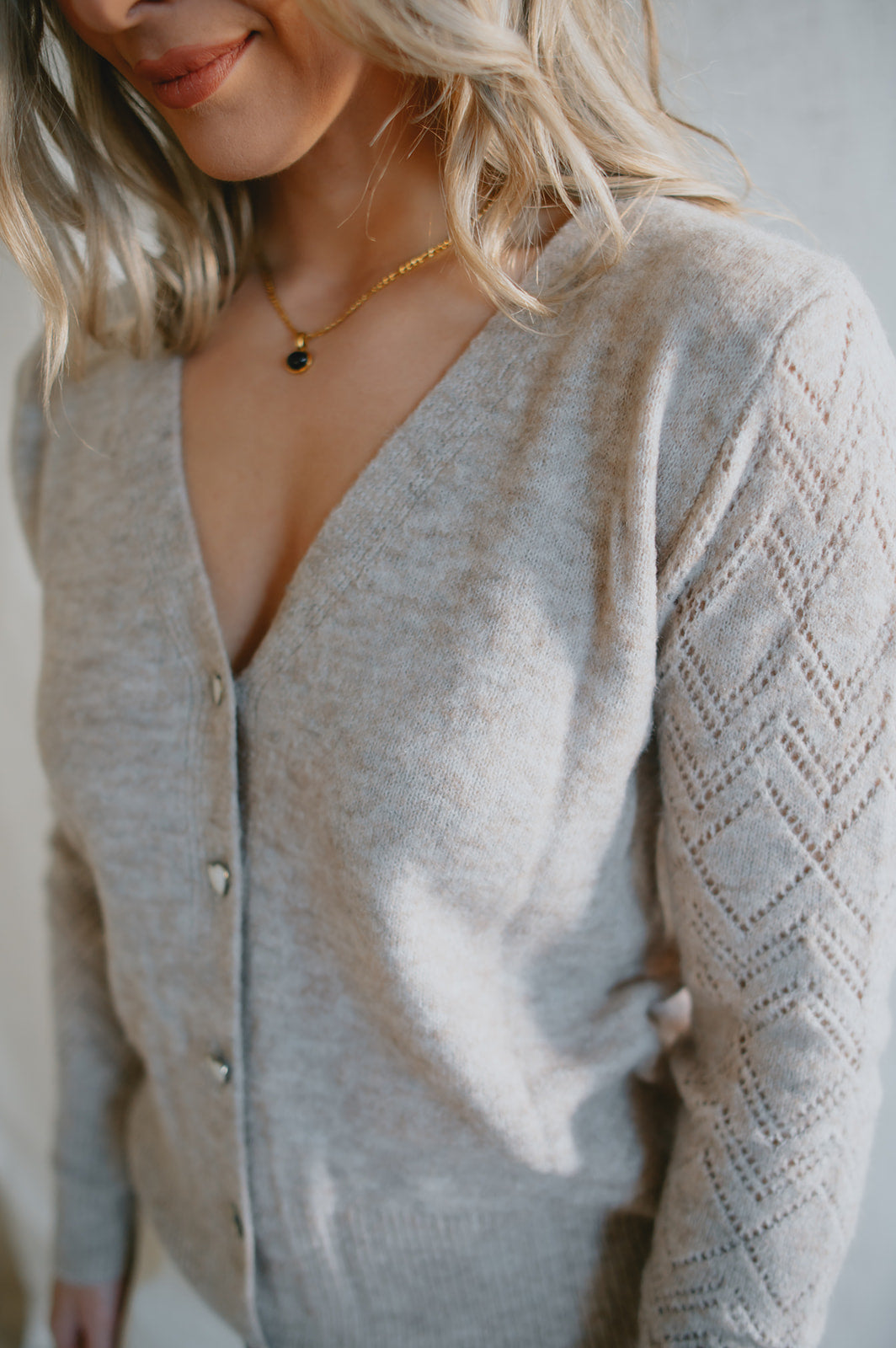 The Knitted Heart Button Cardigan - Oatmeal Beige
