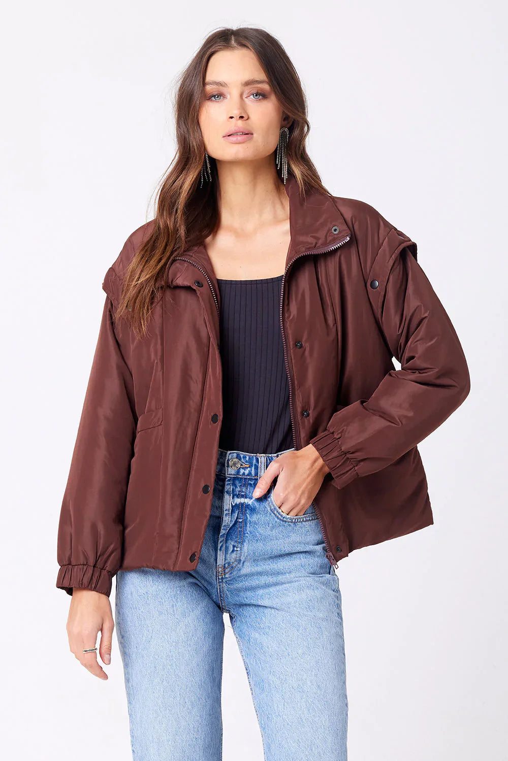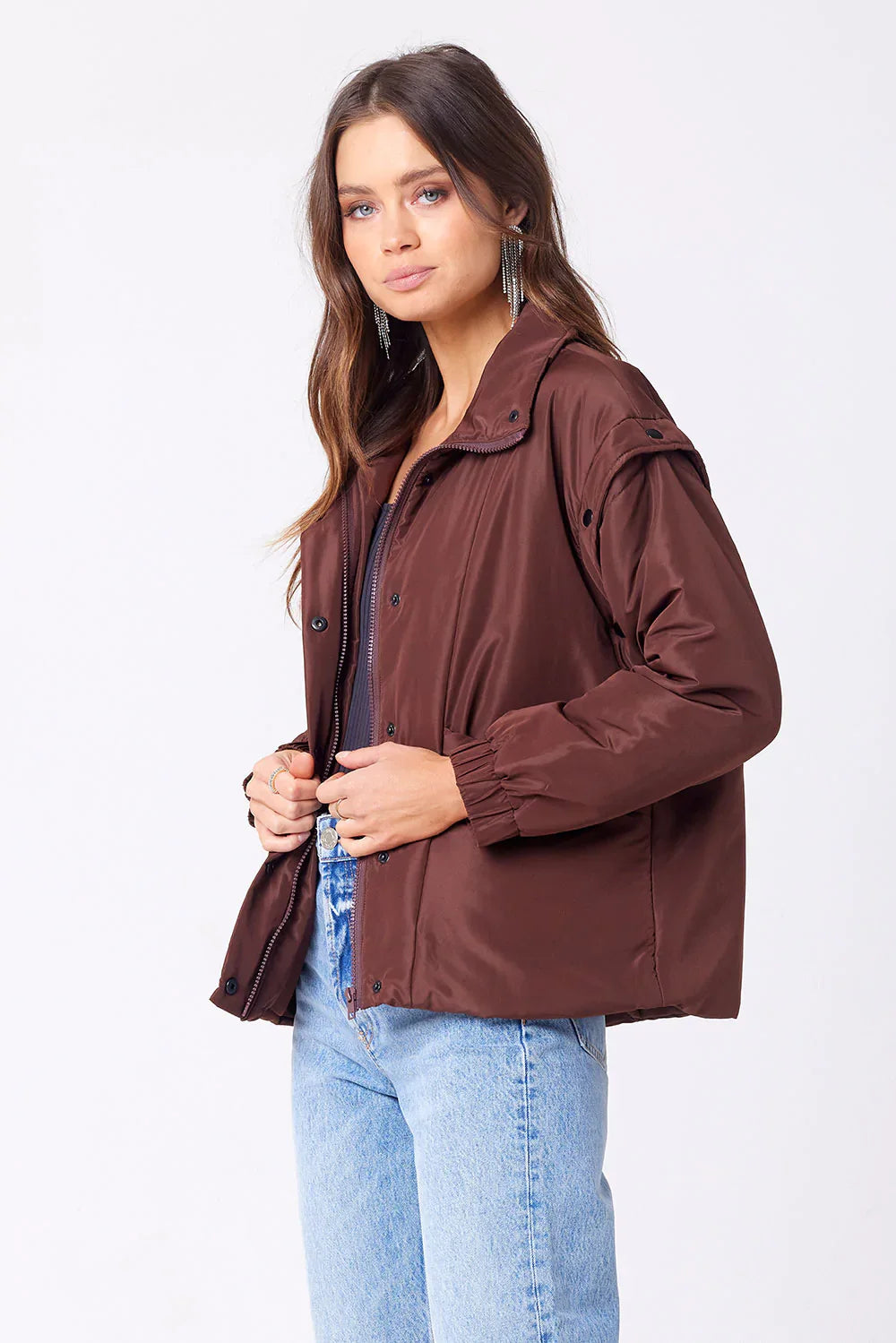 The versatile piece your winter wardrobe needs! Our Leyane Jacket features imported, 100% nylon fabric with detachable sleeves to serve as a vest or a jacket.