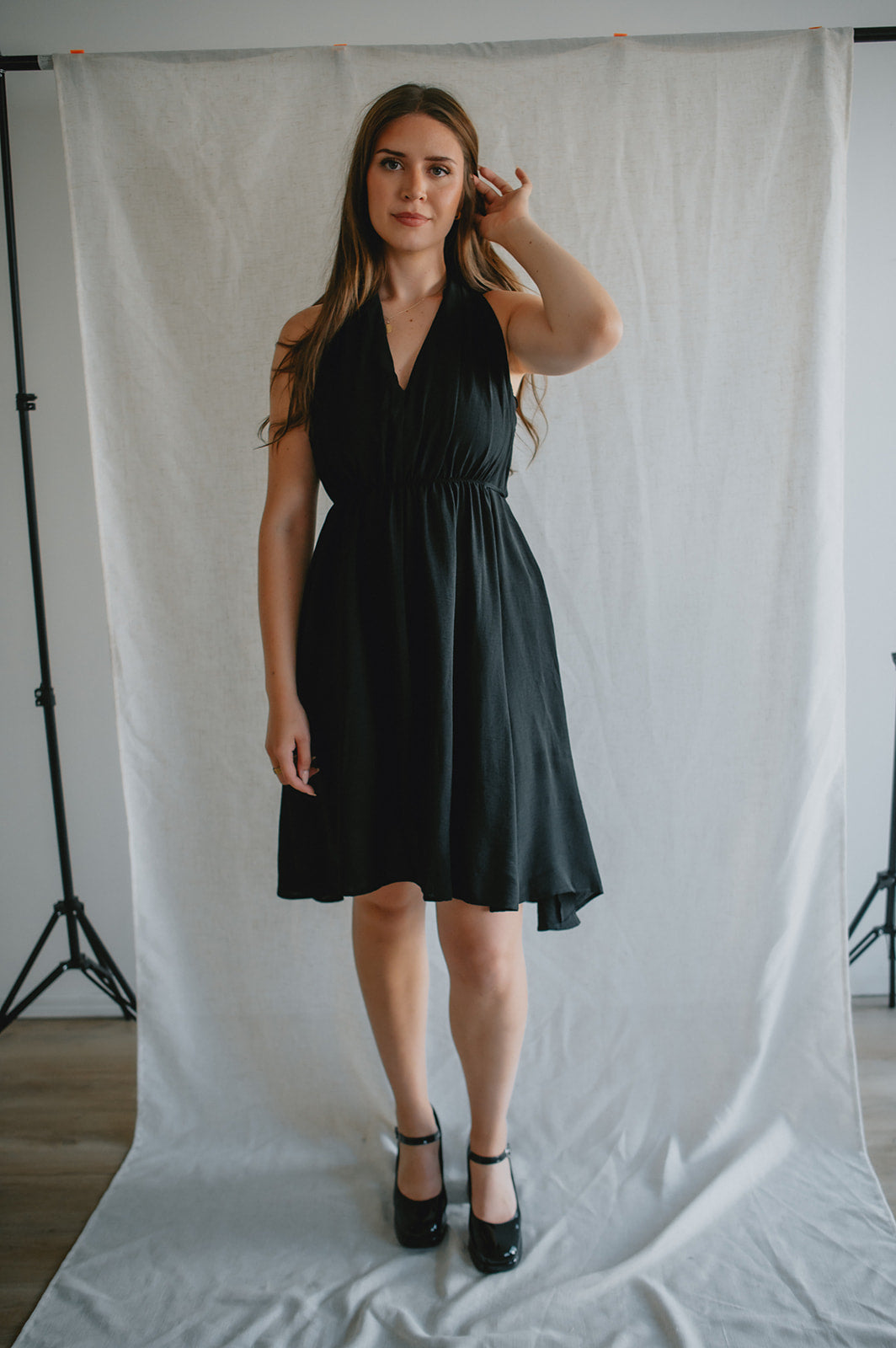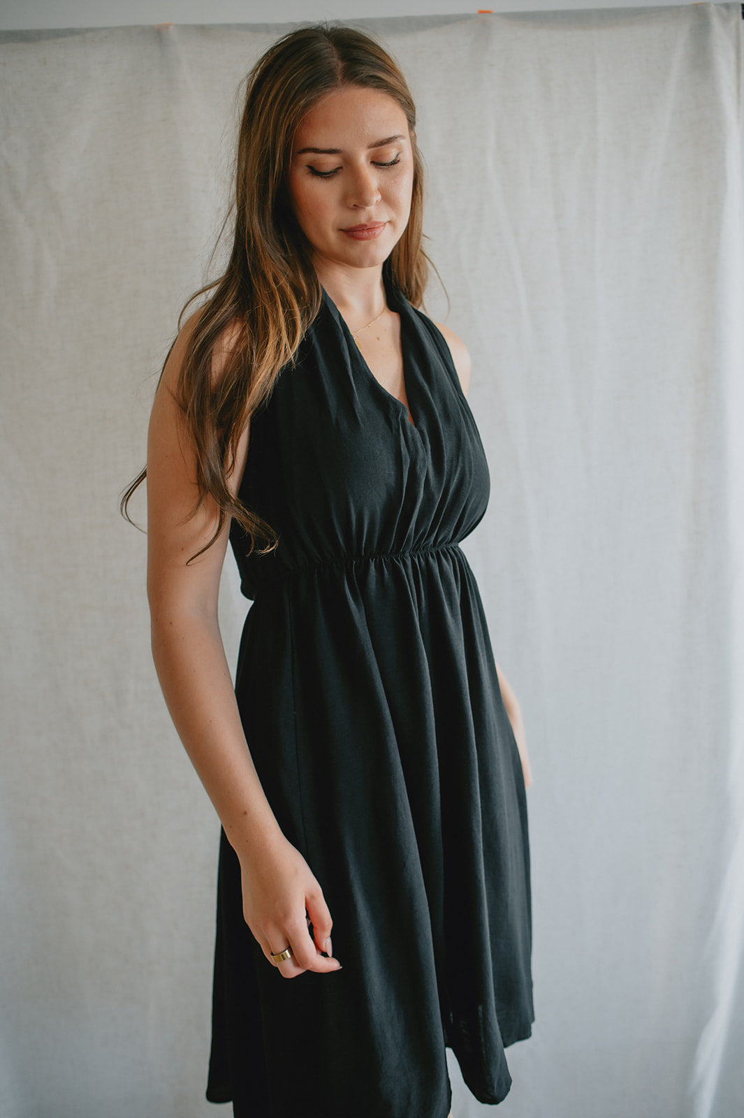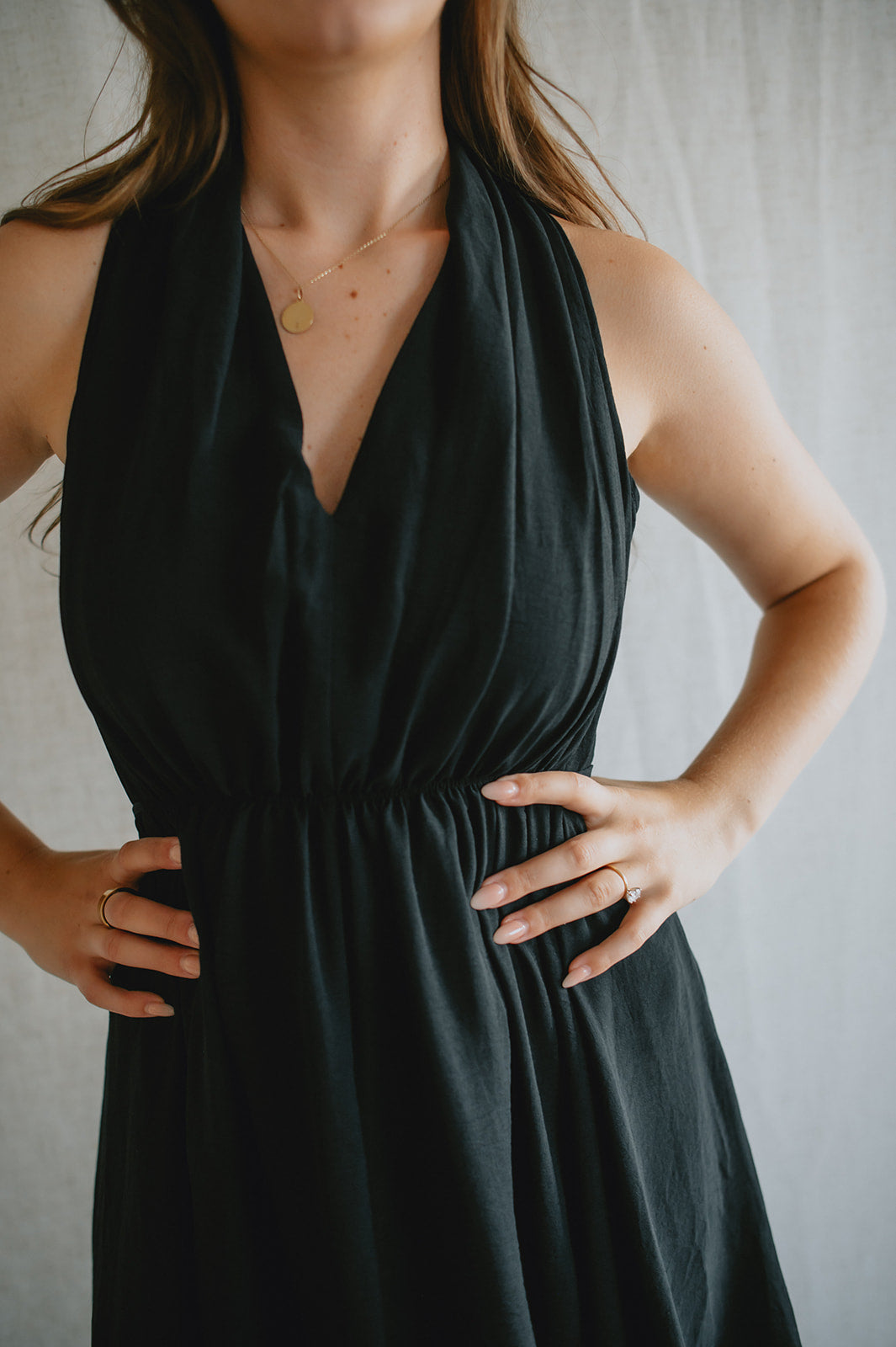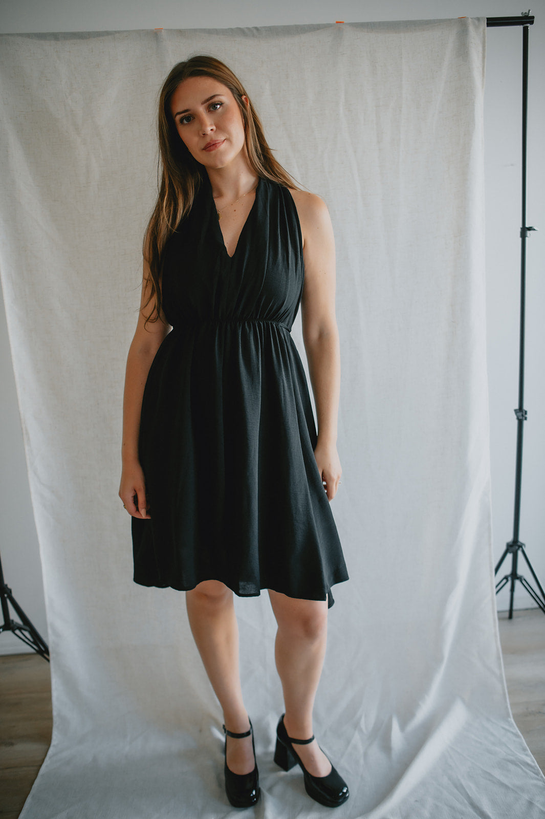 Bold, sleek, and effortlessly chic — the Midnight Muse Dress is designed to turn heads. Featuring a plunging V-neckline and a figure-flattering silhouette, making it the perfect balance of elegance and edge. The minimalist design makes it easy to style up or down, whether you're heading to dinner, drinks, or a night out.