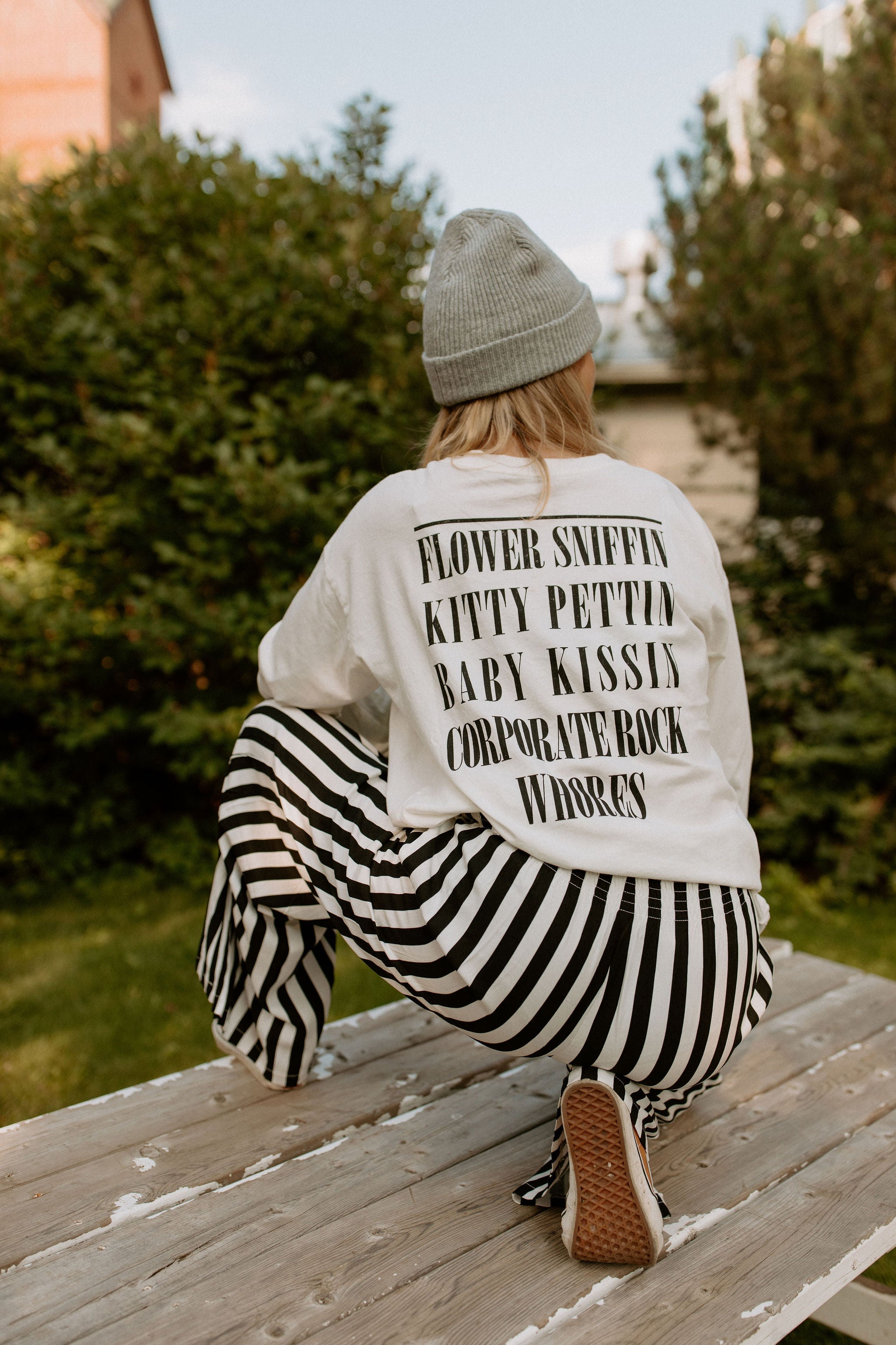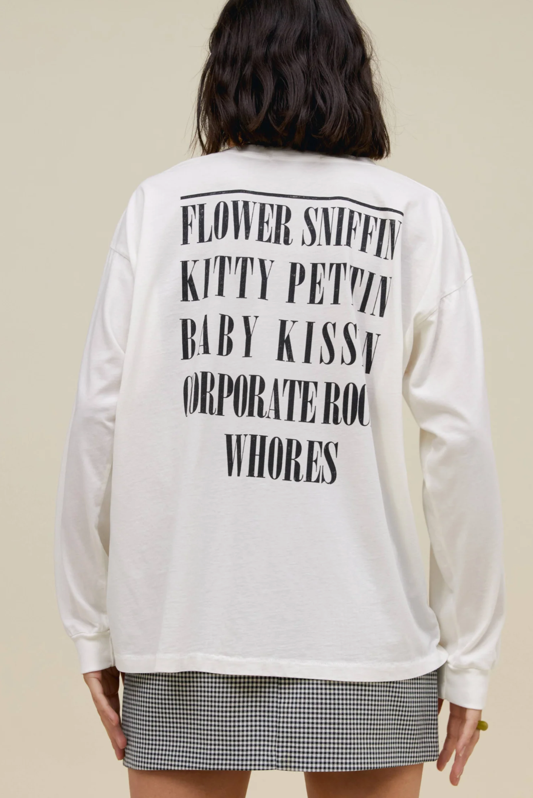 As the story goes, Cobain drew Nirvana’s infamous smiley face logo on a 1991 flyer announcing the launch party of their industry changing album, “Nevermind.” Still one of the most enduring images of the band’s career, a reissue of one of our best-selling graphics featuring this legendary logo hits this long sleeve merch tee with an iconic slogan associated with the boys stamped on the back. A classic piece of memorabilia made to feel like you just left Nirvana’s concert yesterday.