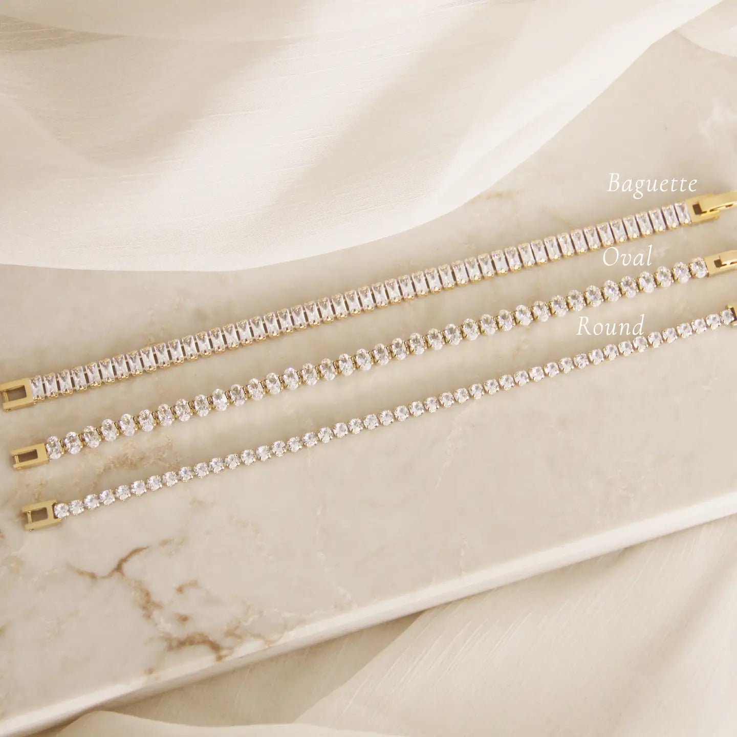 A modern take on a timeless classic, The Oval Tennis Bracelet features stunning oval-cut cubic zirconia set in 18K gold over surgical steel. Waterproof, tarnish-resistant, and nickel- and lead-free, it’s built for everyday elegance. Wear it solo for an understated shimmer or stack it with your favourites to elevate your wrist game — either way, this piece adds the perfect touch of sparkle.