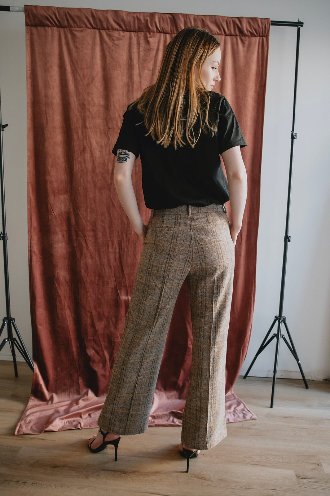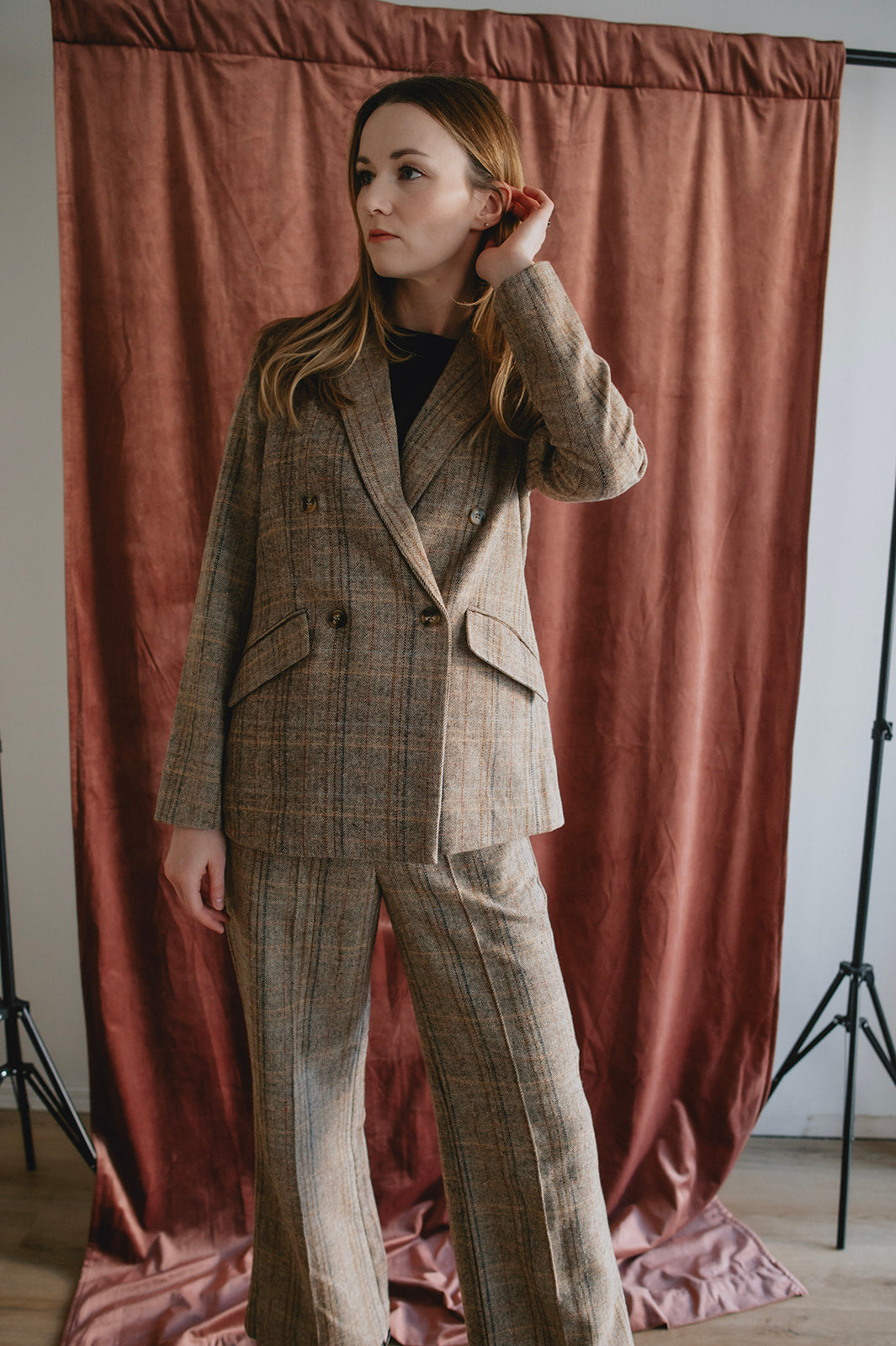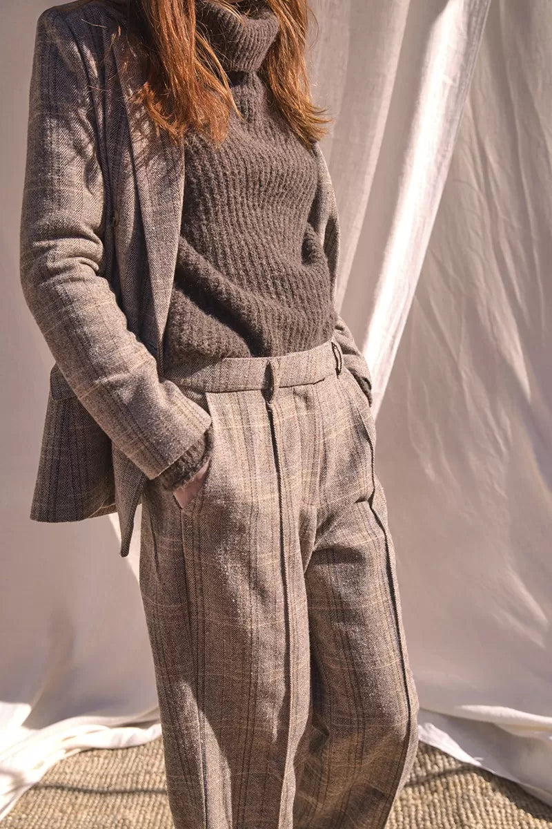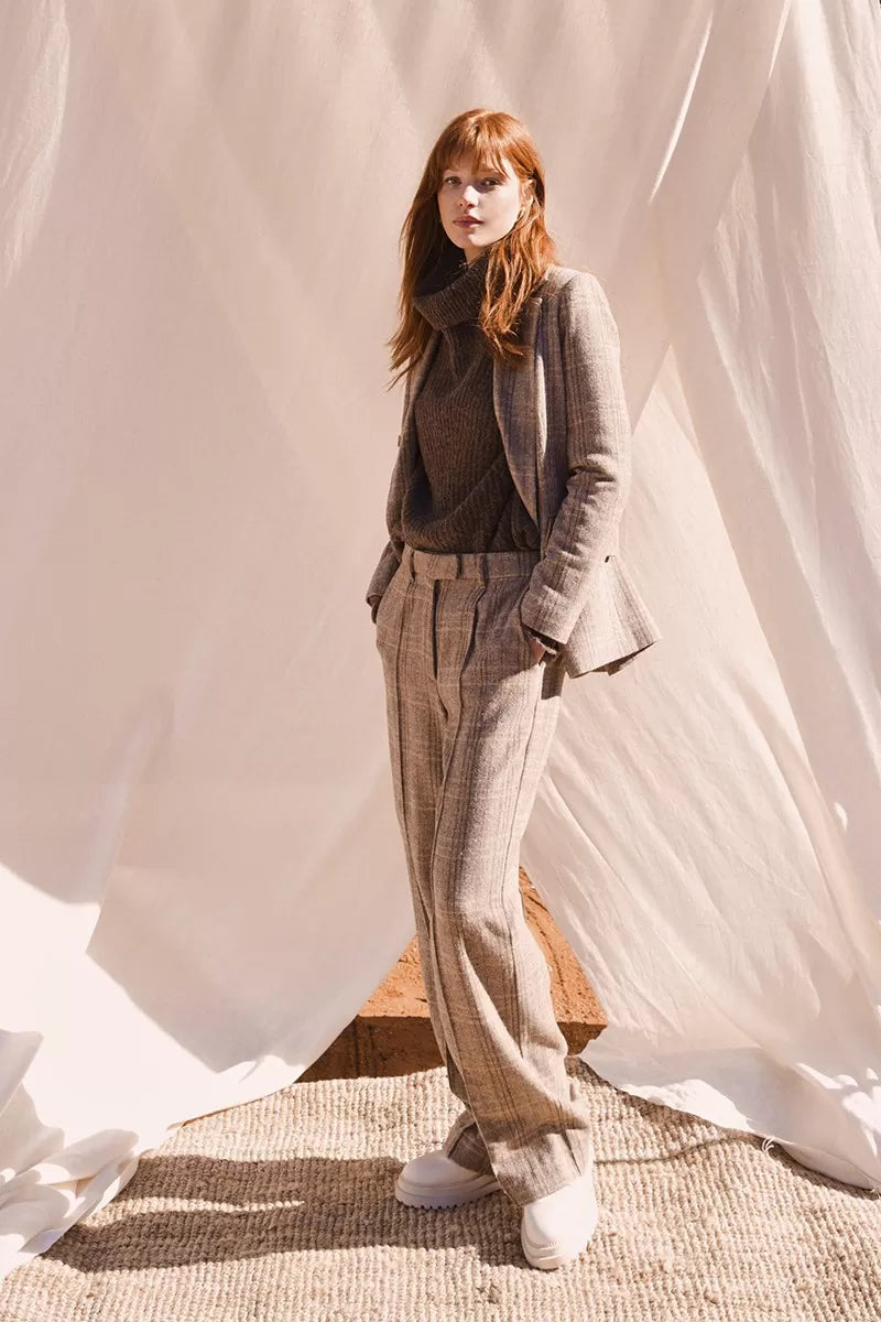 A classic trouser with an updated fit: high-waisted straight-leg plaid pants. Wear them with the matching blazer for the ultimate power look, or wear on their own with a tee and sneakers or a denim shirt and some boots.