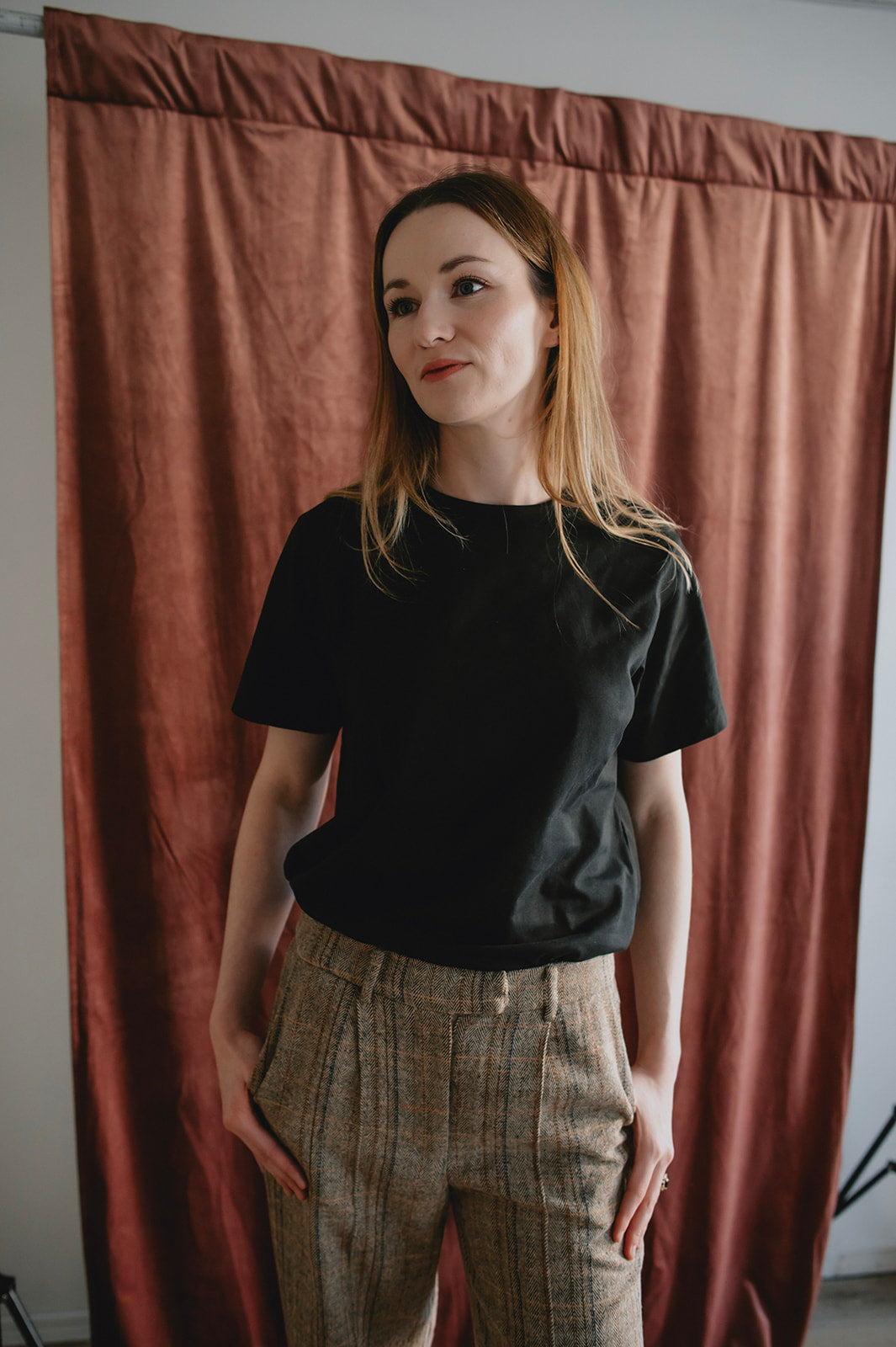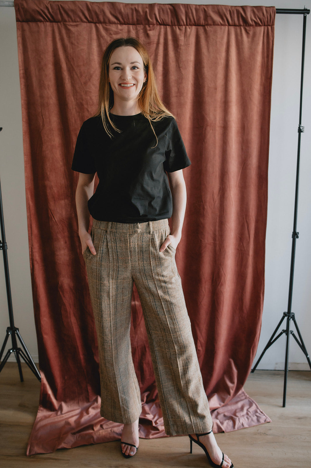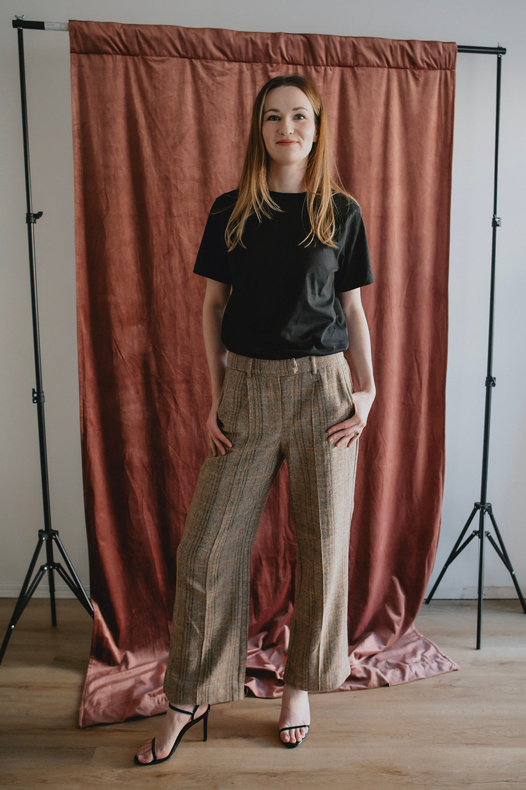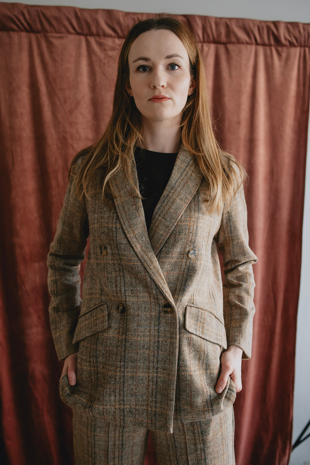 A classic trouser with an updated fit: high-waisted straight-leg plaid pants. Wear them with the matching blazer for the ultimate power look, or wear on their own with a tee and sneakers or a denim shirt and some boots.