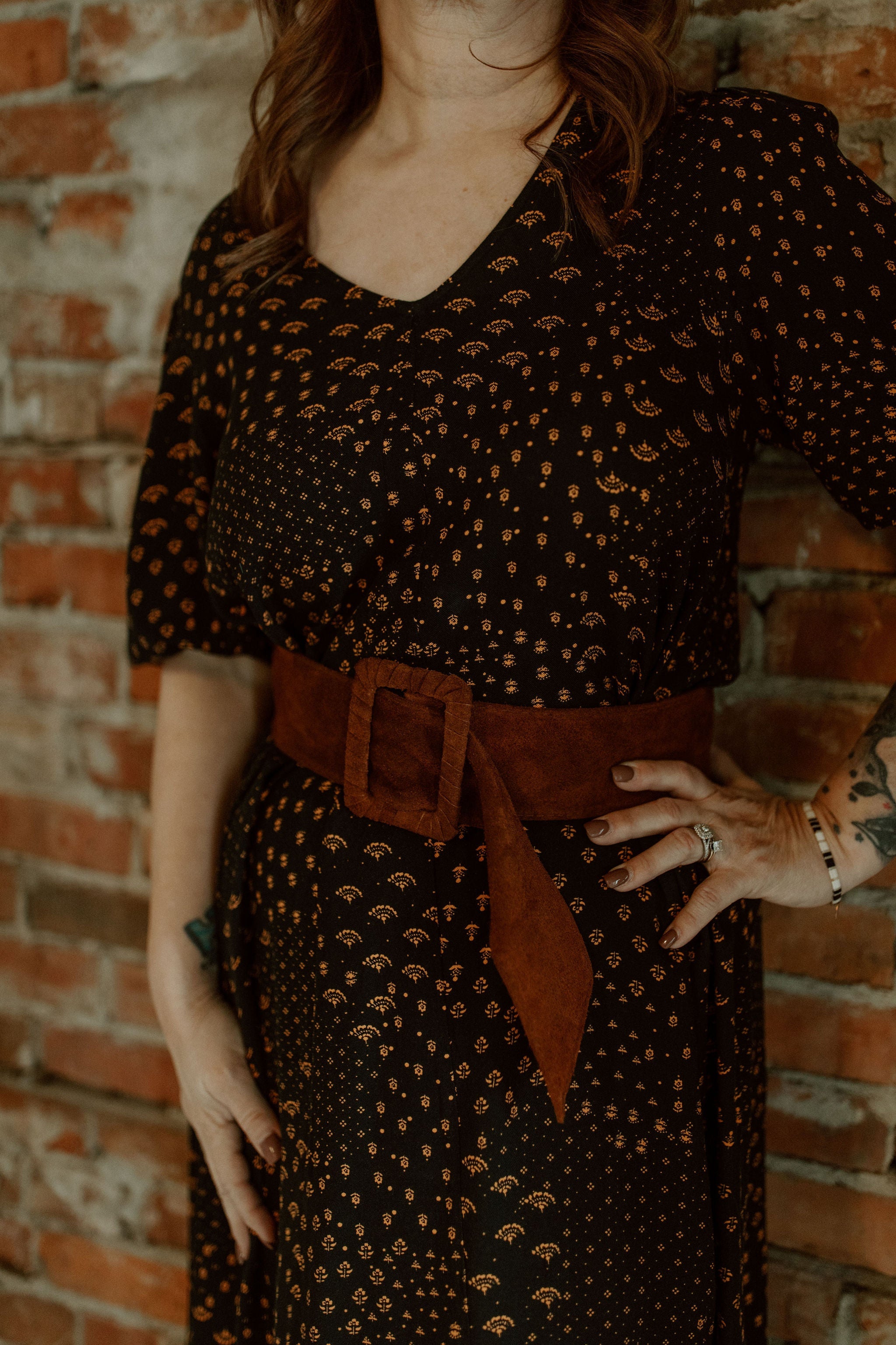 This Suede adjustable belt has a beautiful wrapped buckle. Made from 100% Italian leather.