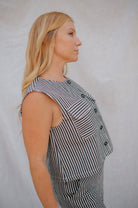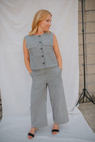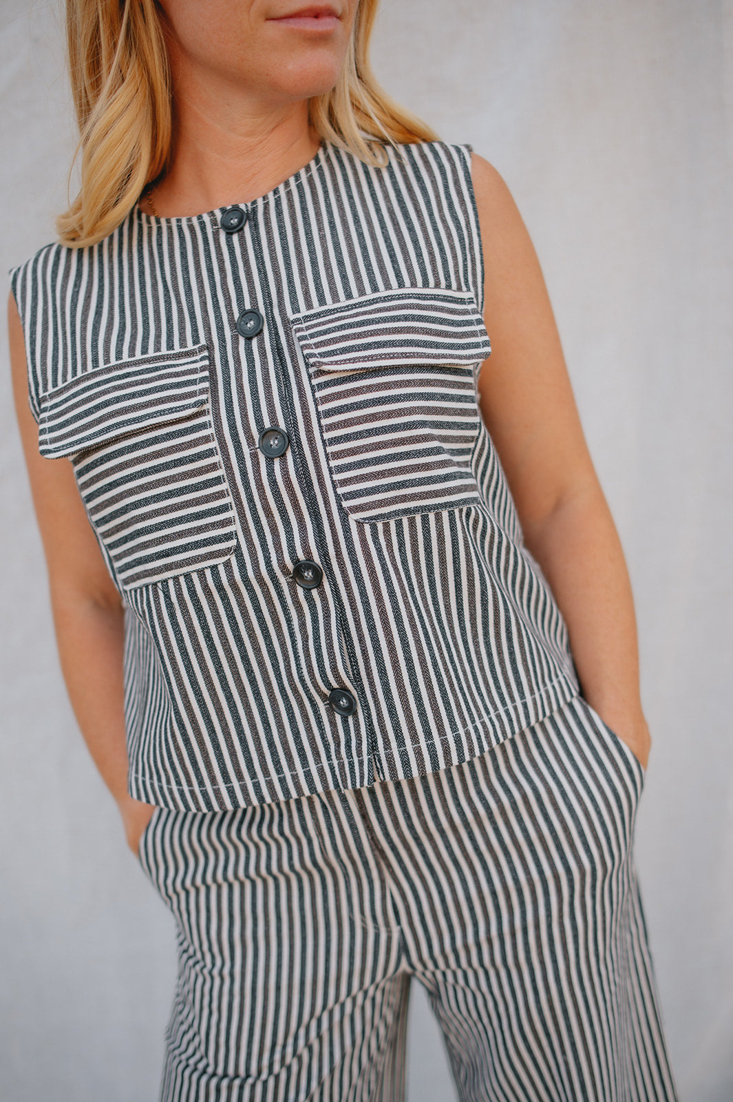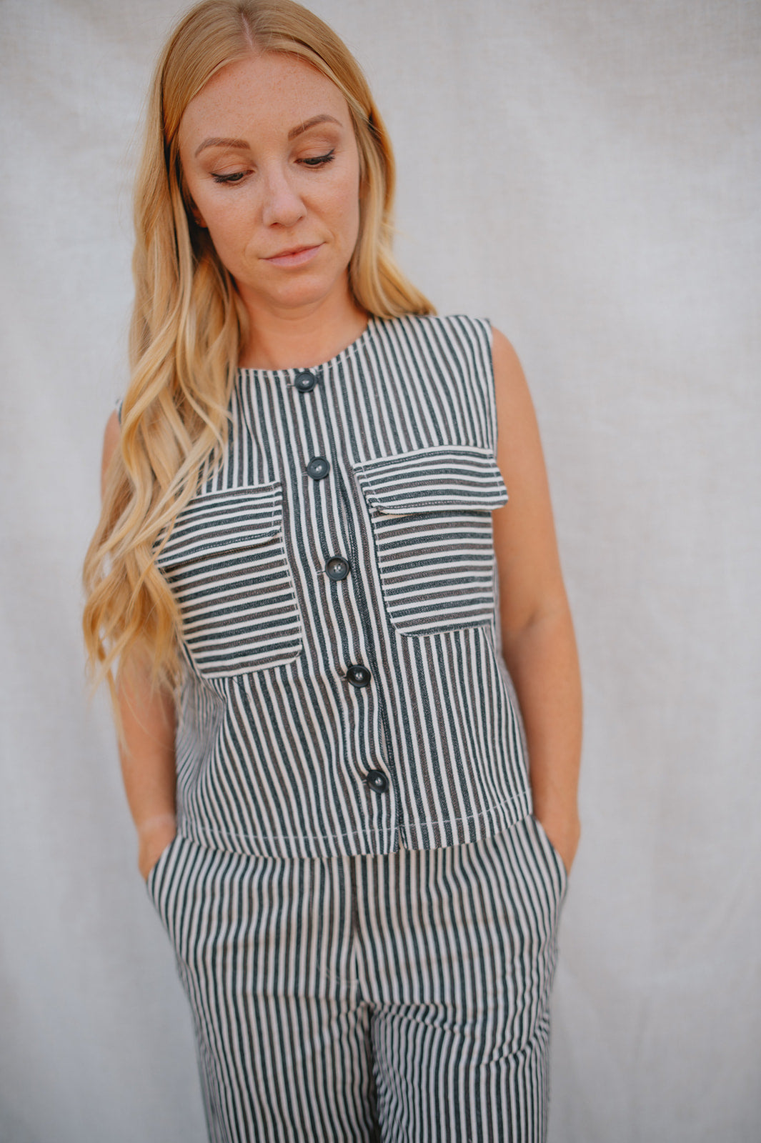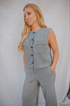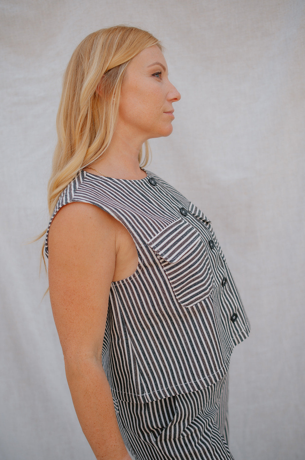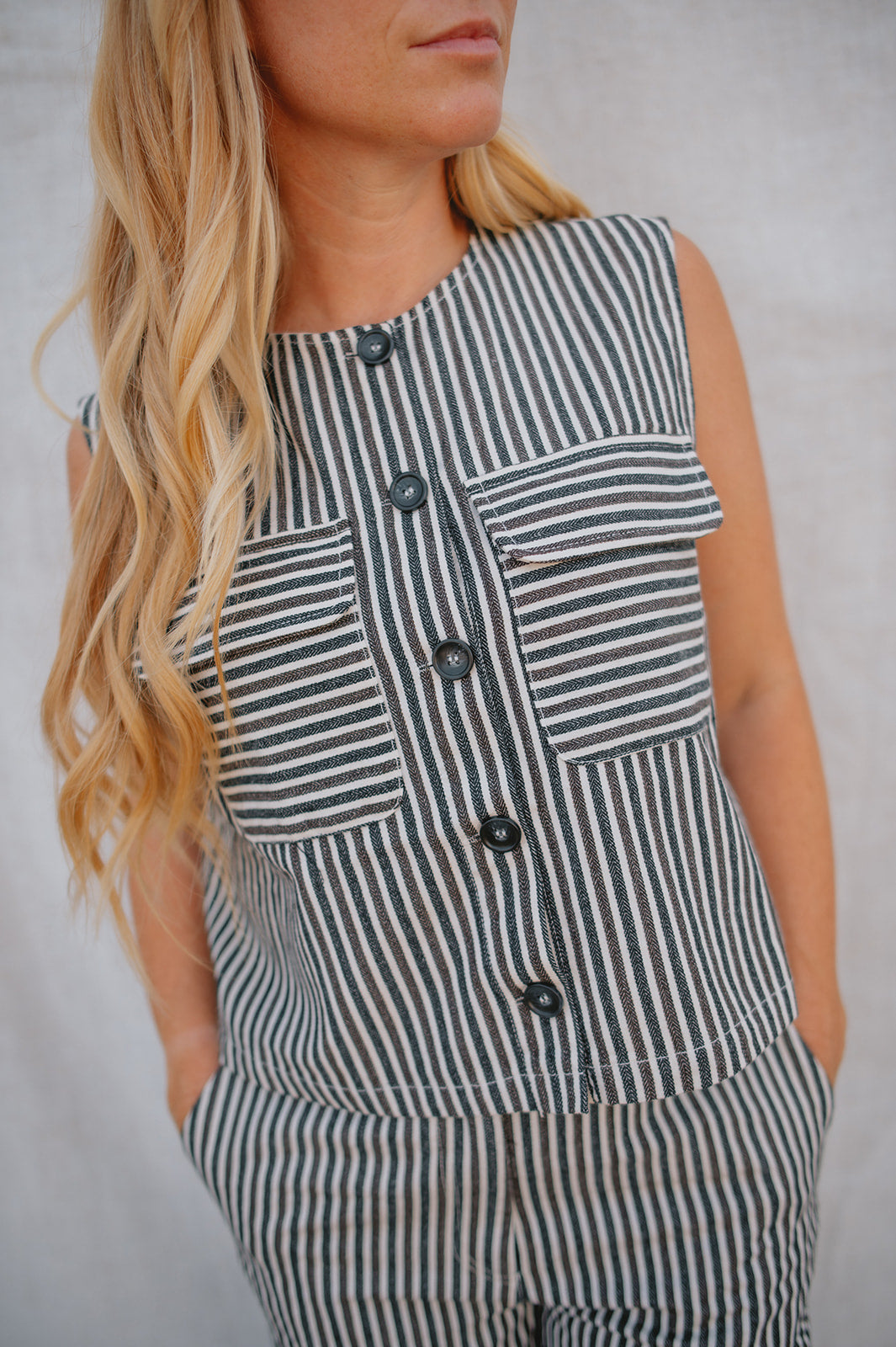 This sleeveless vest is made from a fluid, textured fabric that not only adds a unique touch to your outfit, but also ensures you stay cosy. Plus, it features two convenient chest pockets, perfect for storing your essentials. Layer with a long sleeve t-shirt or a shirt for extra warmth.